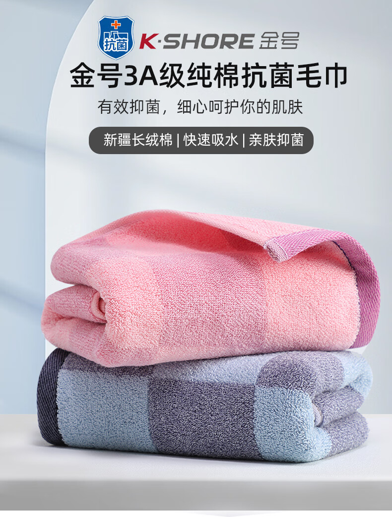 【集采8】金号毛巾 115g3A抗菌成人男士纯棉快速吸水洗脸面巾 2条72*35cm灰+紫