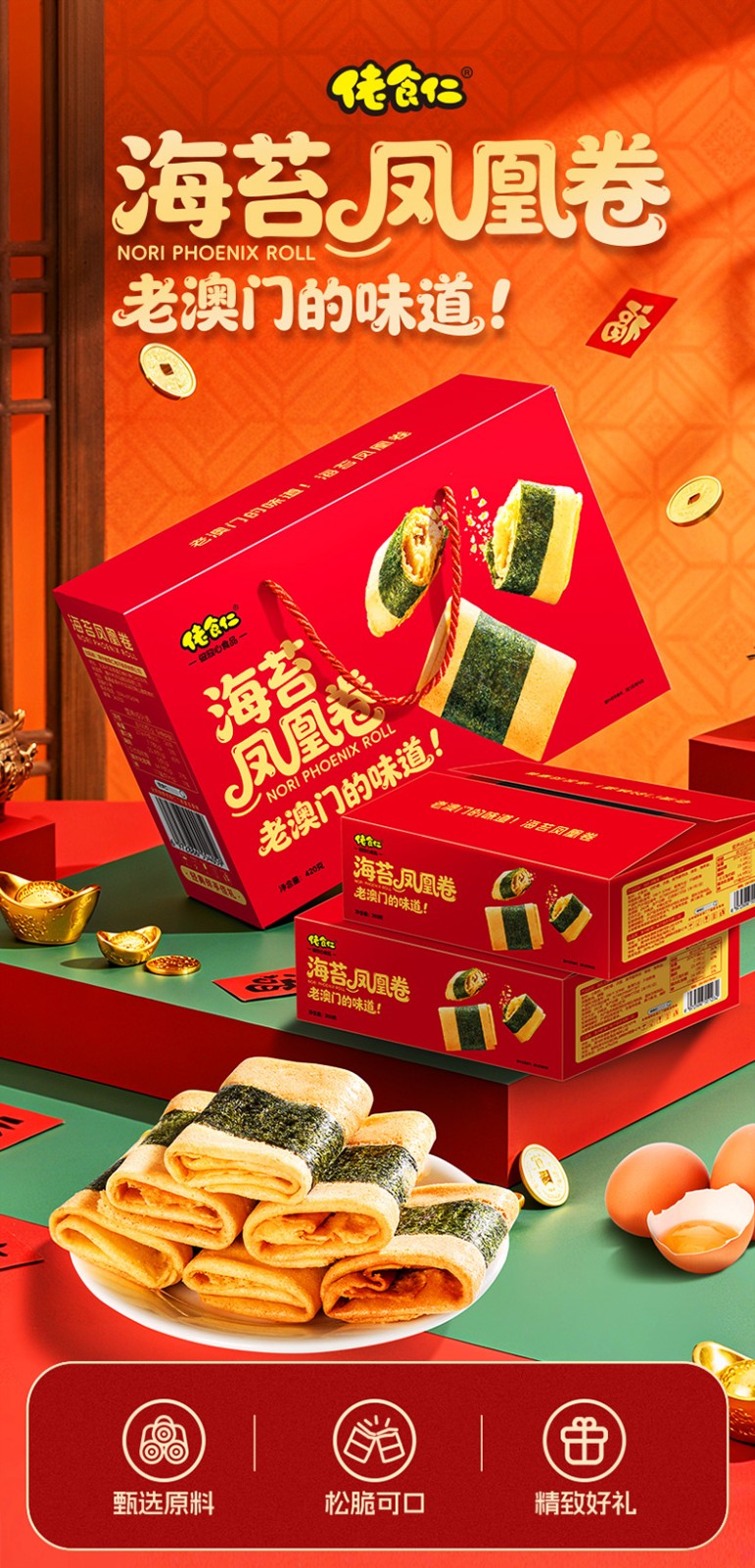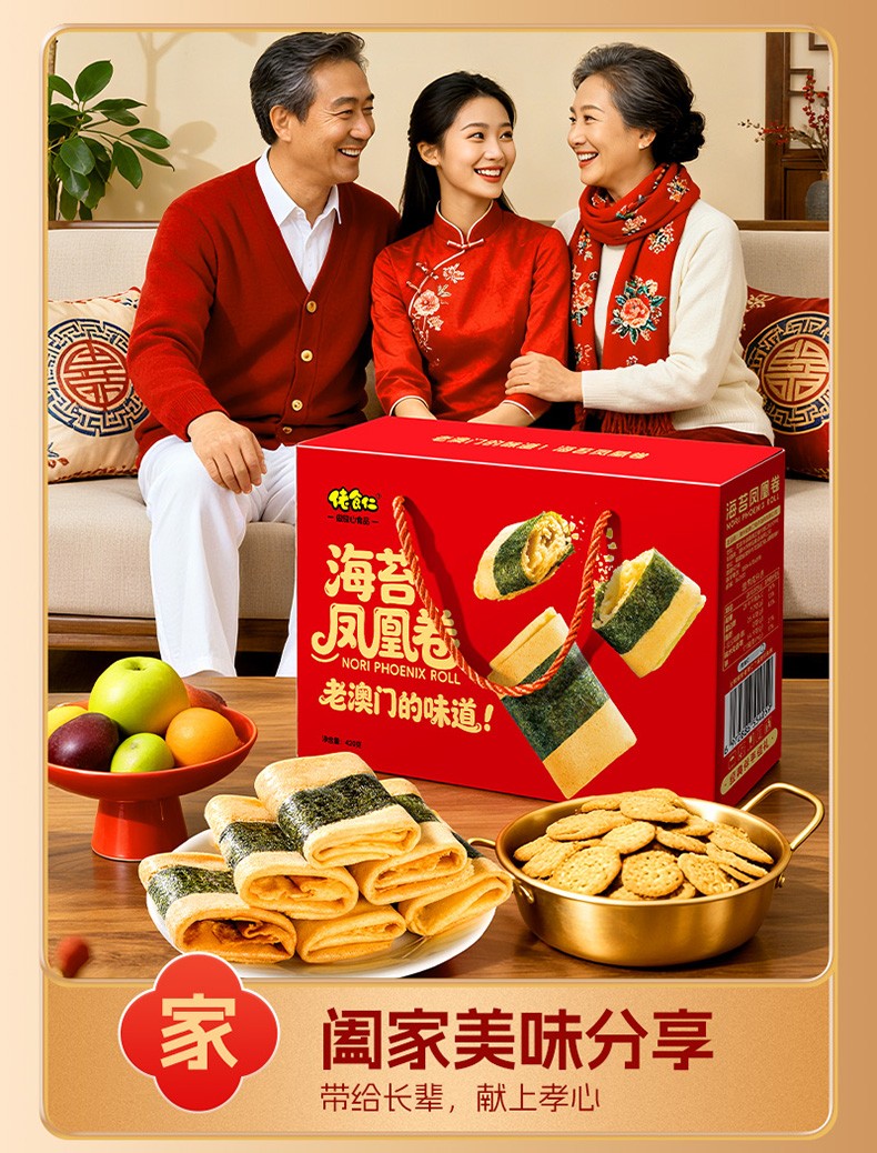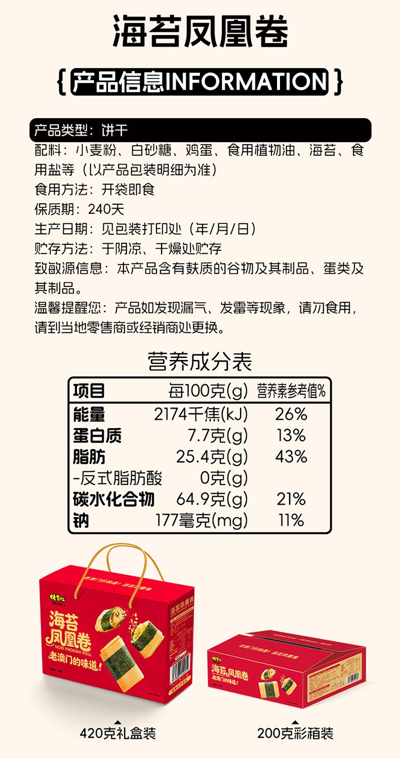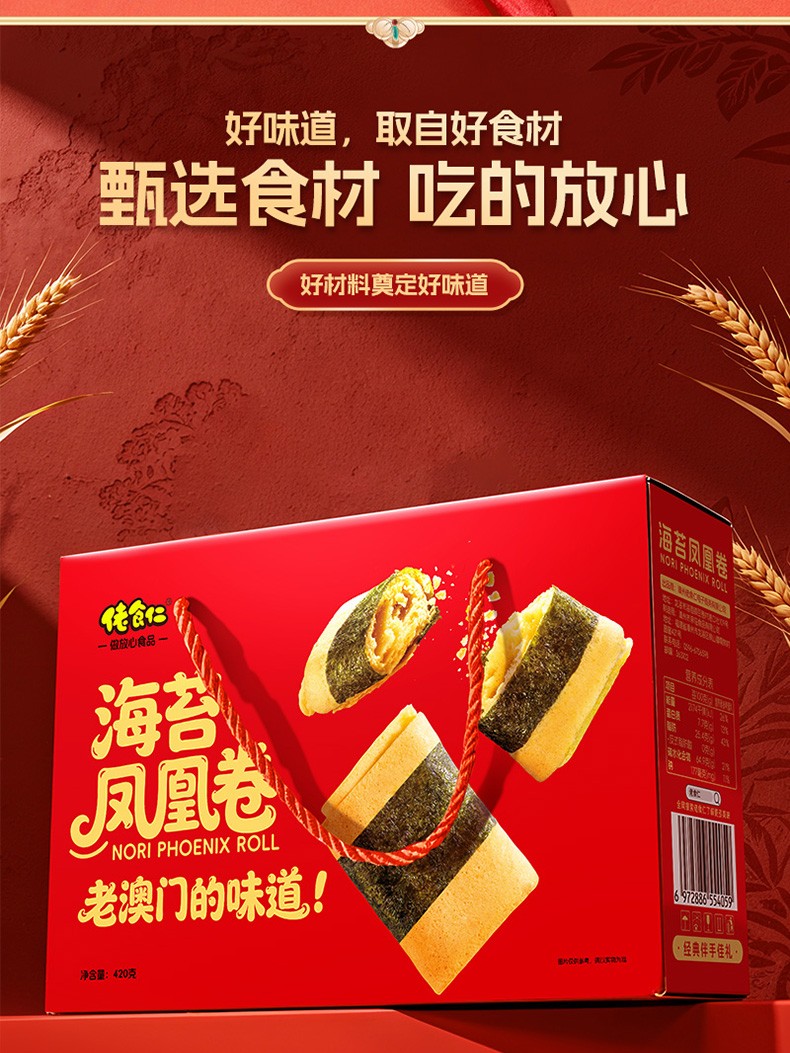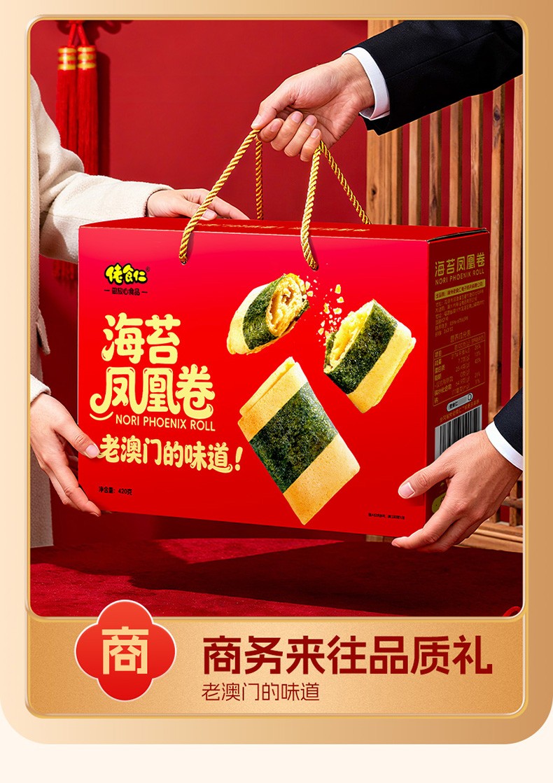商品名称:佬食仁 海苔凤凰卷420g手提礼盒(红版) 6972886554095
