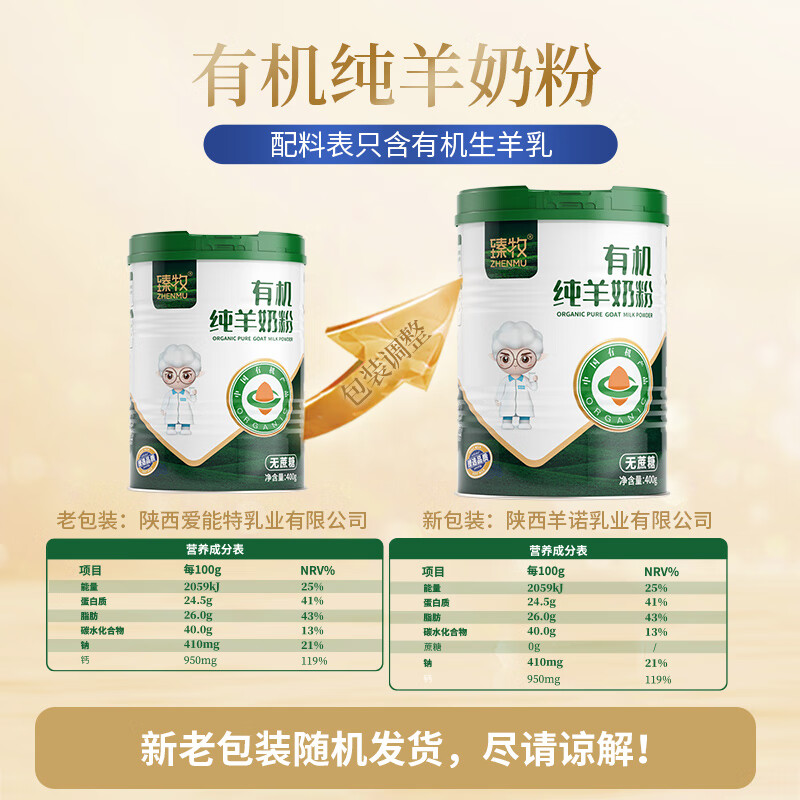 商品名称:臻牧有机纯羊奶粉中老年青少年儿童孕妇无蔗糖羊奶粉400g 6975585240445 偏远另加运费