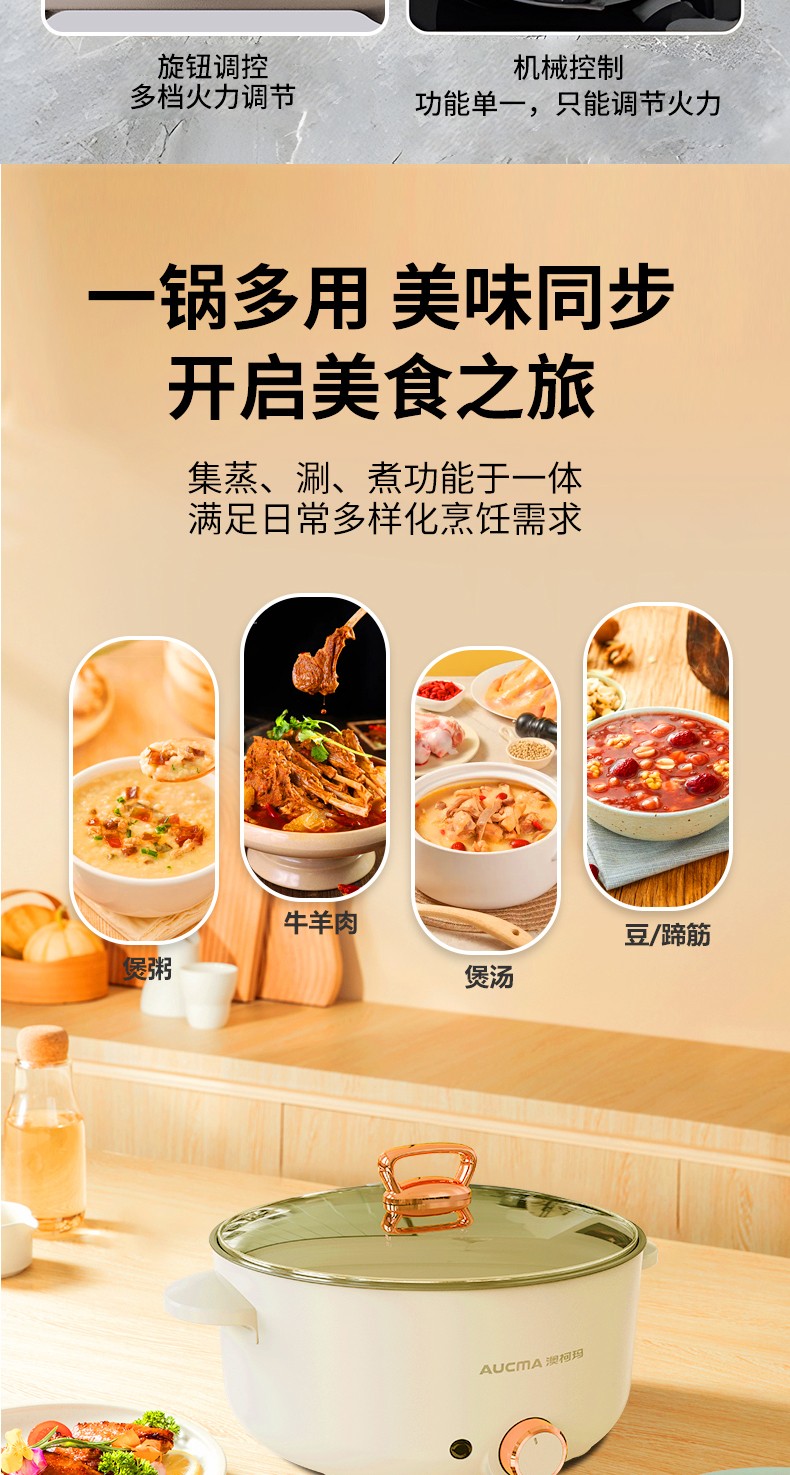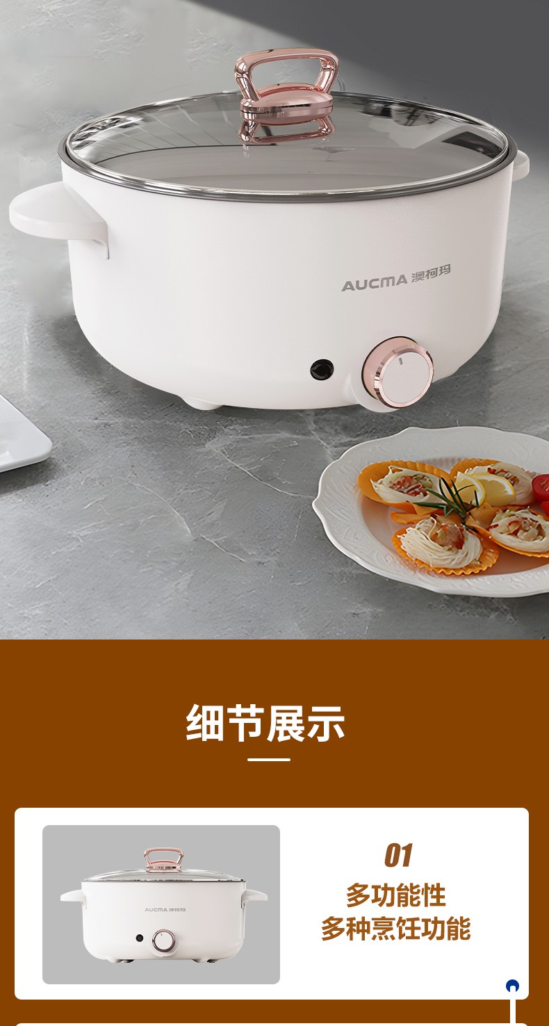 澳柯玛3L多功能用途电火锅不粘锅电煮锅AHG-30P6