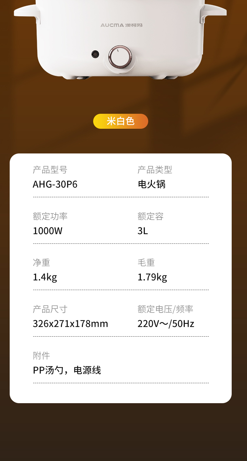 商品名称:澳柯玛3L多功能用途电火锅不粘锅电煮锅AHG-30P6