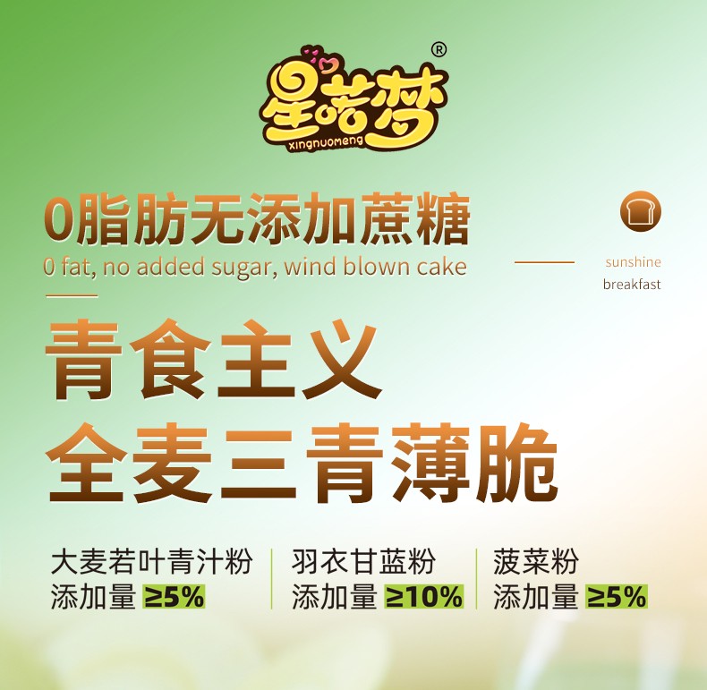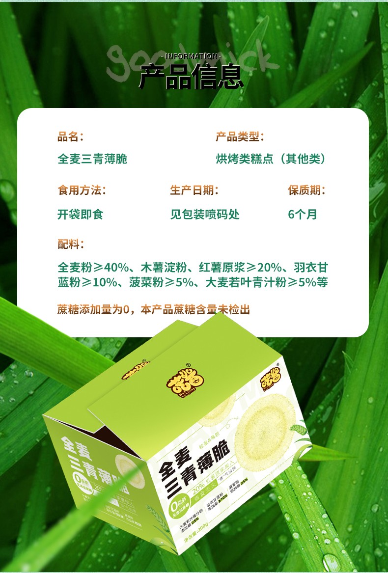 商品名称:星若梦 0脂肪无添加蔗糖 全麦三青薄脆饼干10包 sqbc10*1 偏远另加运费