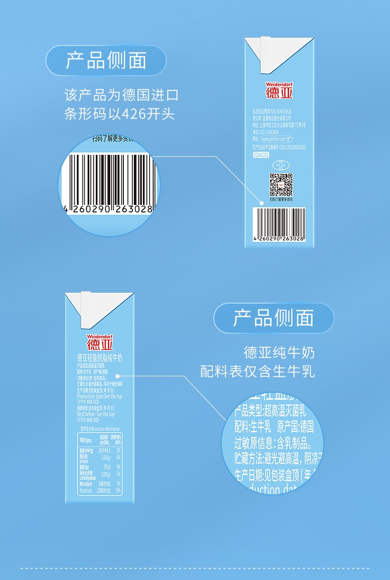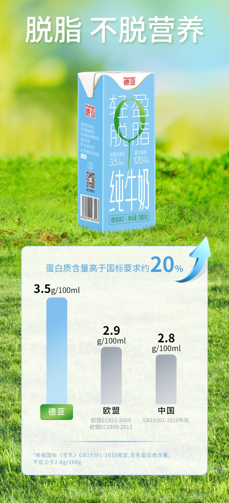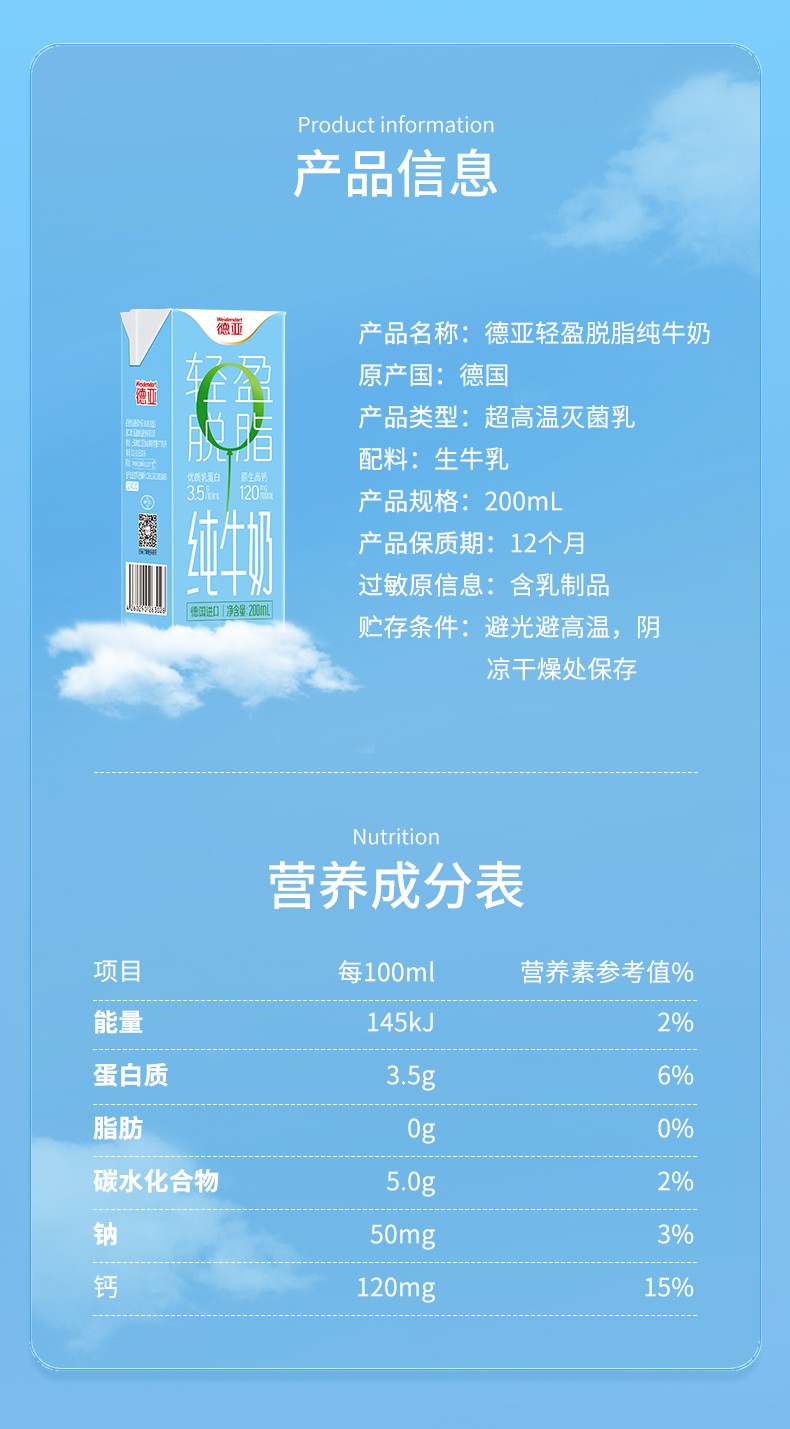 商品名称:德亚轻盈脱脂纯牛奶200mlx12礼盒 4260290263042