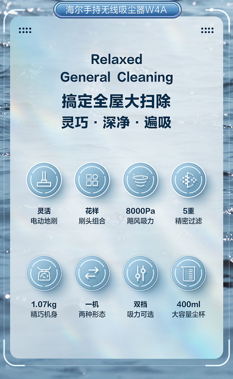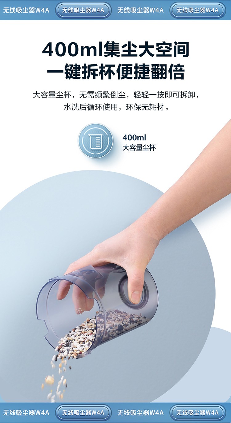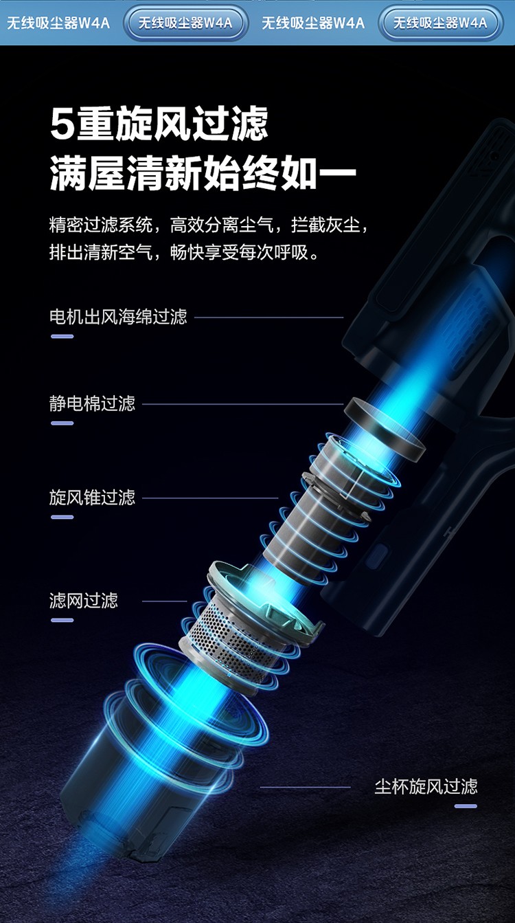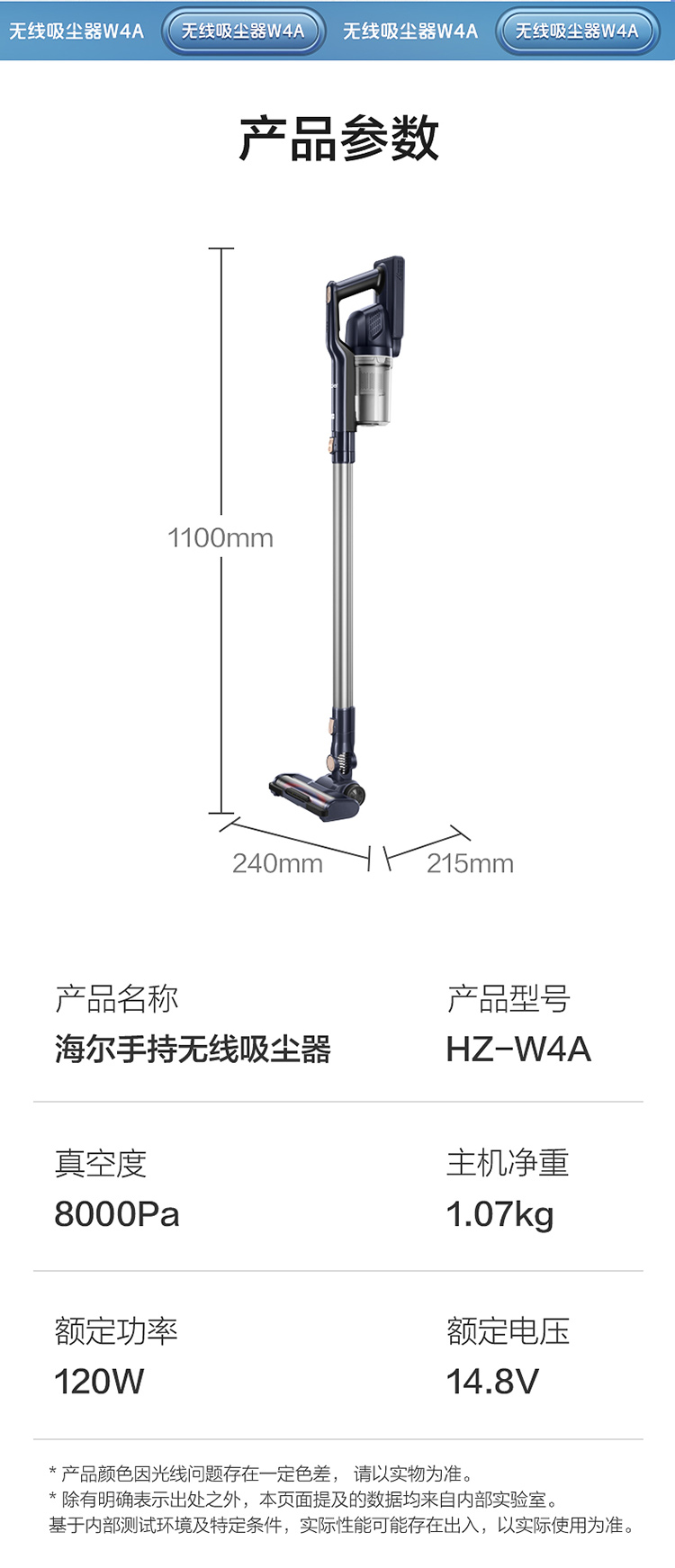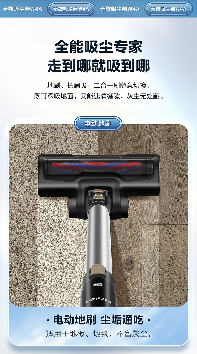 商品名称:海尔手持大吸力无线锂电吸尘器HZ-W4A