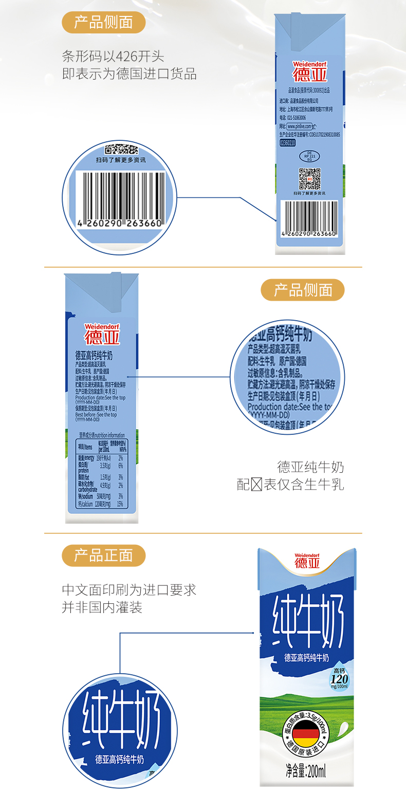 德亚高钙纯牛奶200mlx10礼盒 9420079500828 偏远另加运费