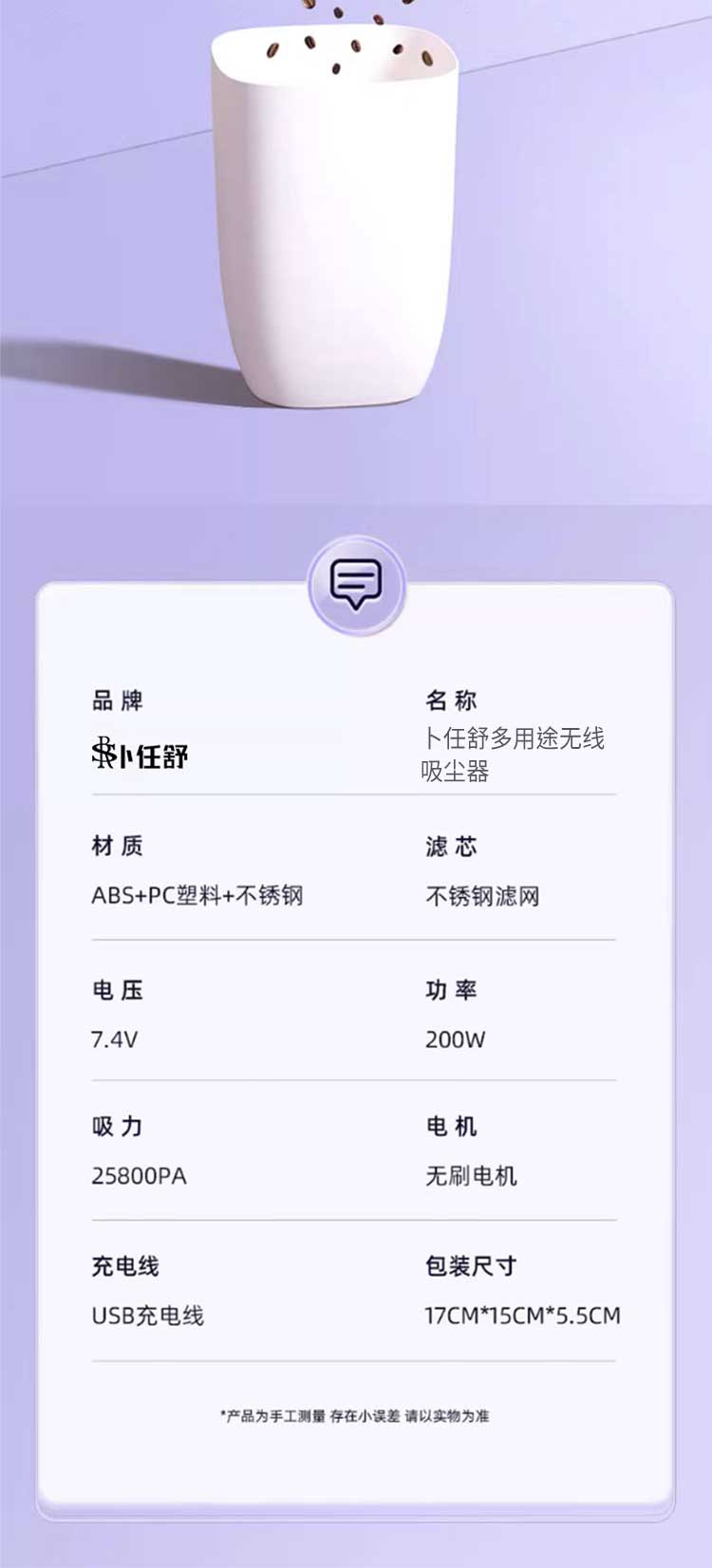 商品名称:卜任舒 多用途无线吸尘器 BRS-071
