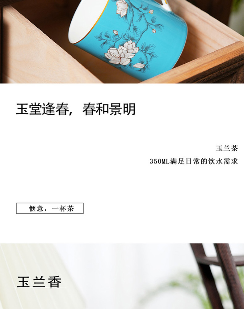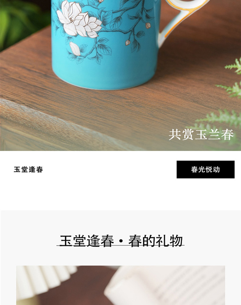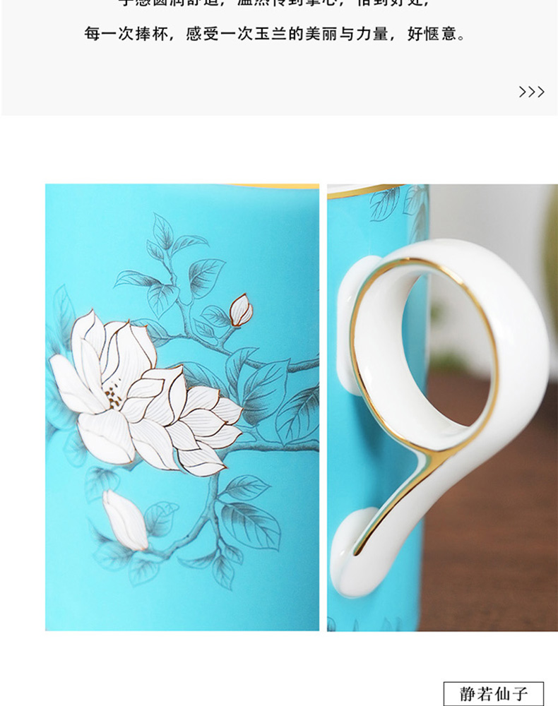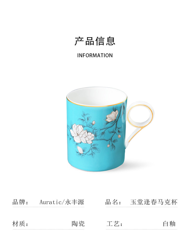商品名称:国瓷永丰源 玉堂逢春 350ml陶瓷中式马克杯会议杯水杯 天蓝色 6930190900351