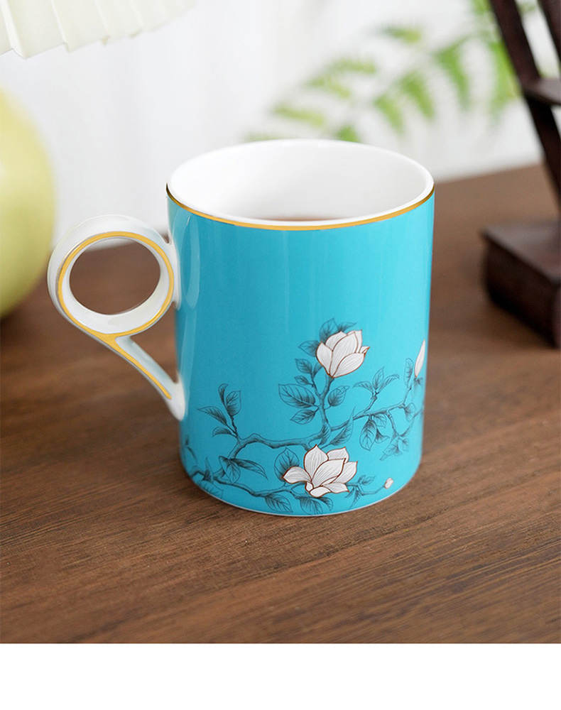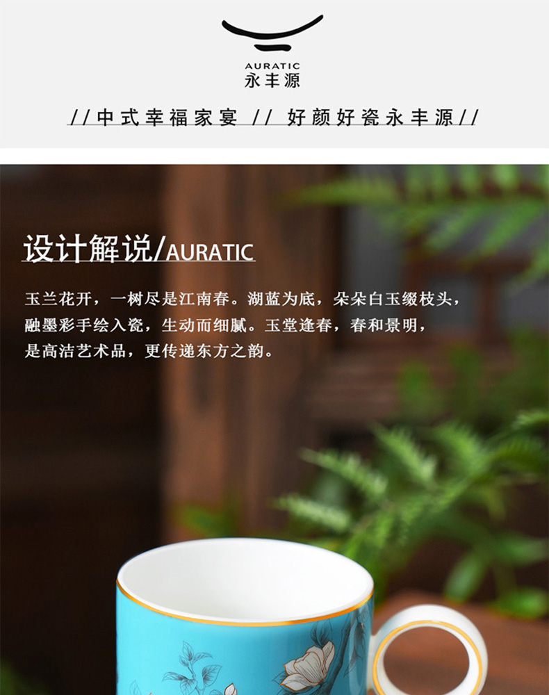 国瓷永丰源 玉堂逢春 350ml陶瓷中式马克杯会议杯水杯 天蓝色 6930190900351