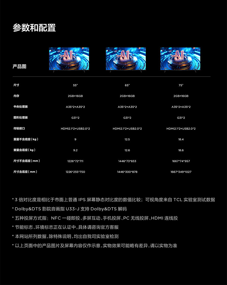 商品名称:J-TCL集团荣誉出品乐华/ROWA 2024新品 65英寸智慧AI电视 A++4K超显屏 HDR防蓝光 智能语音 双频WIFI智能电视65U33-J 不支持无理由退货 65U33-J