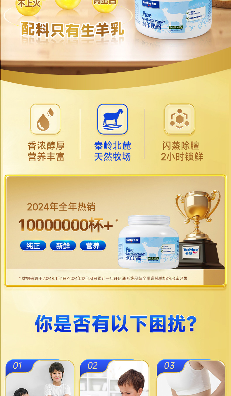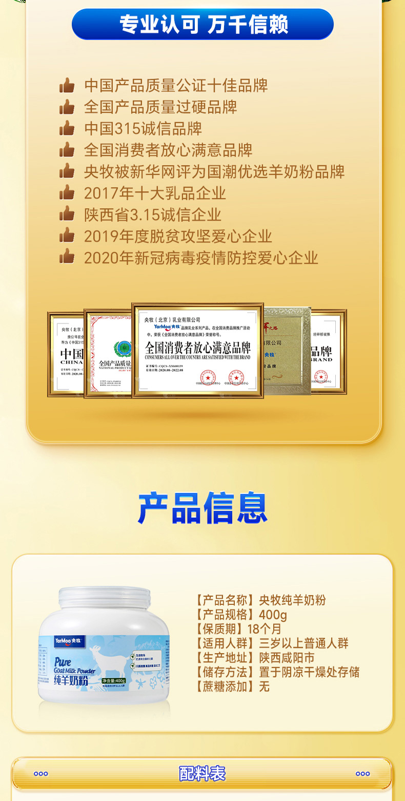 商品名称:央牧 纯羊奶粉 罐装 400克 6973934090215