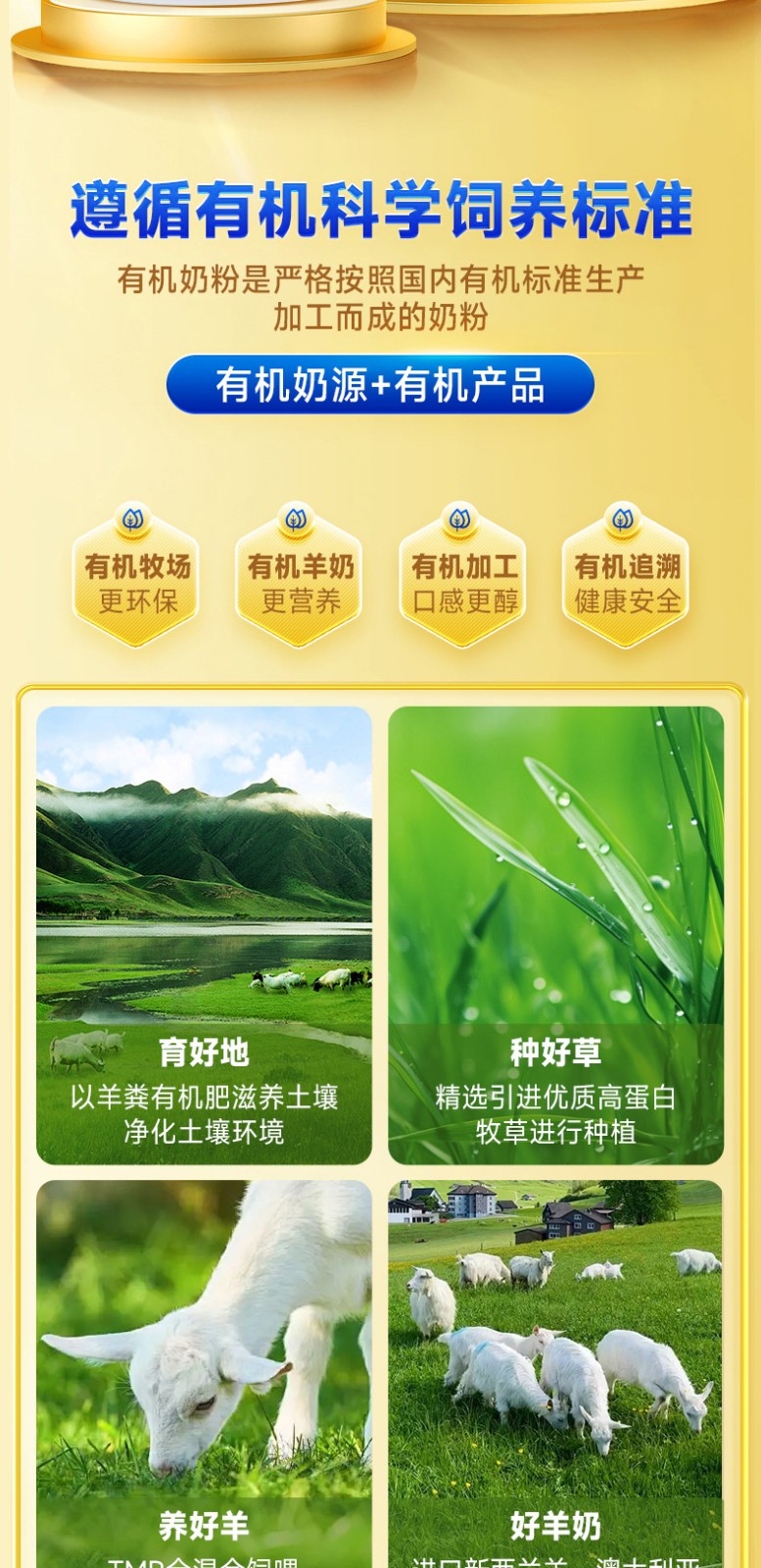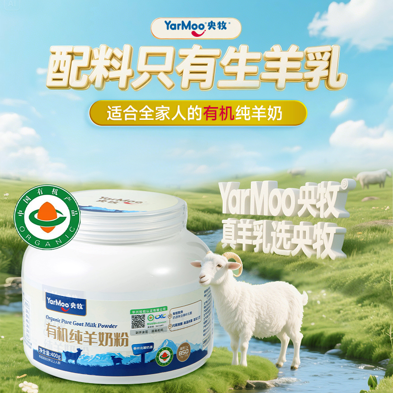 商品名称:央牧 有机纯羊奶粉 罐装 400克 6973934090222