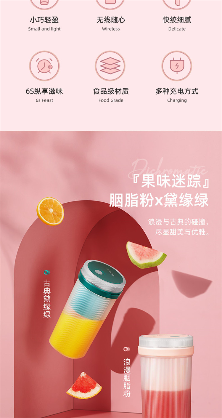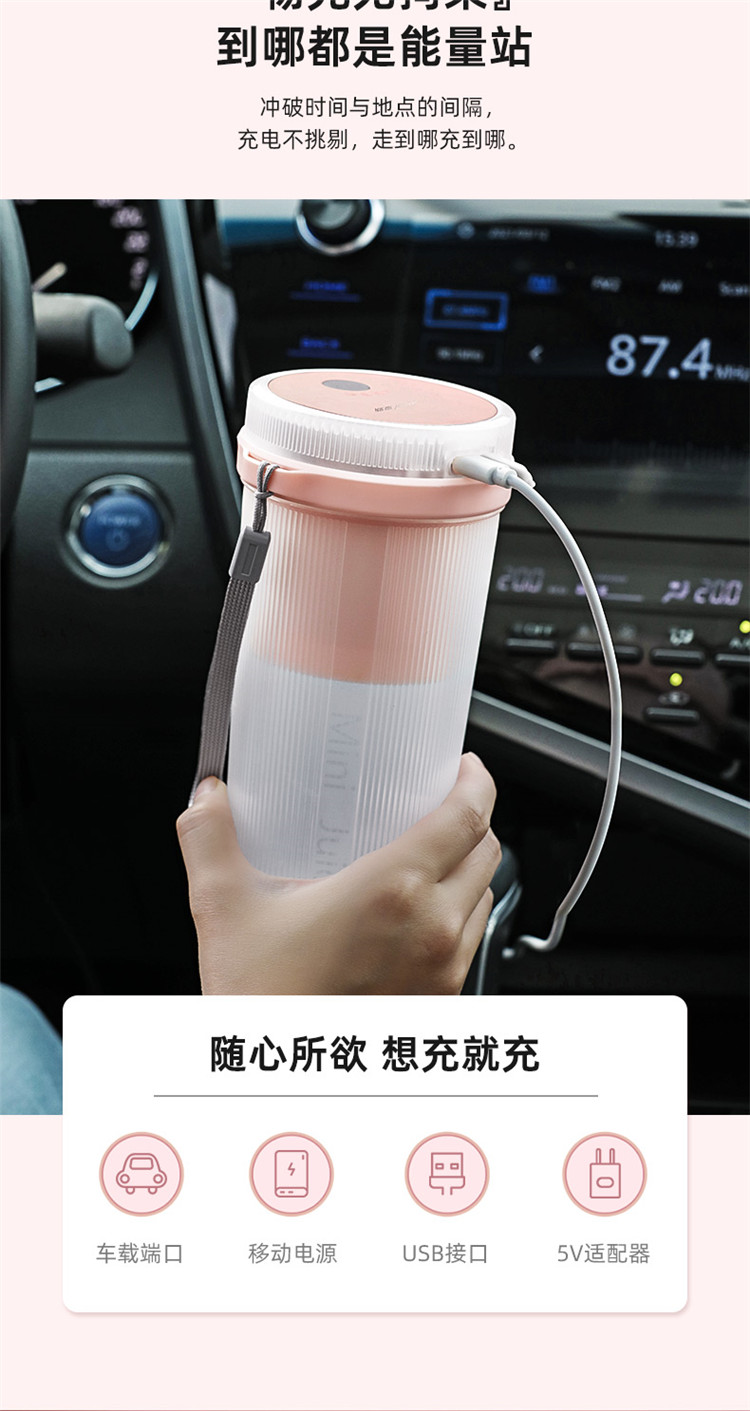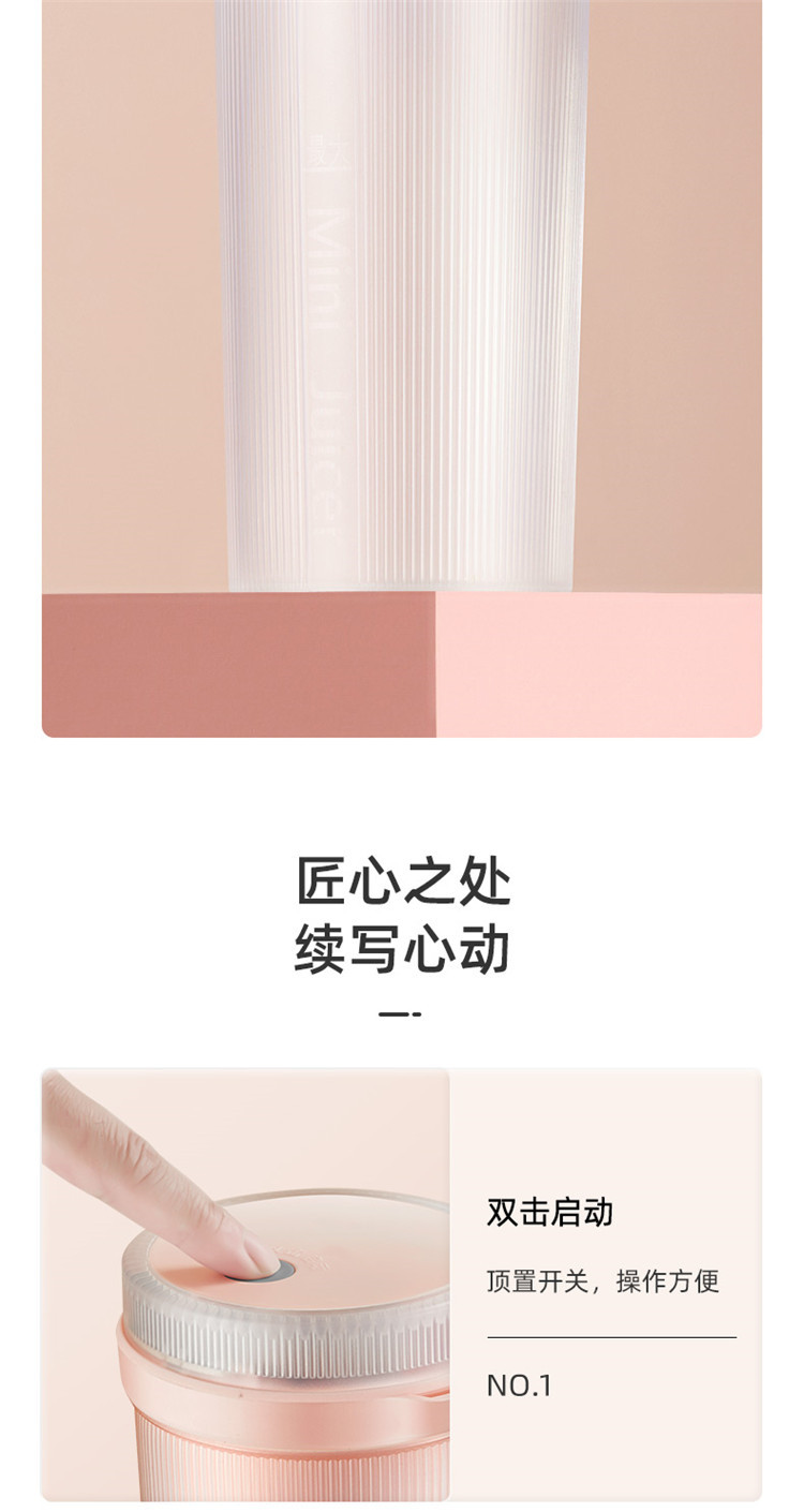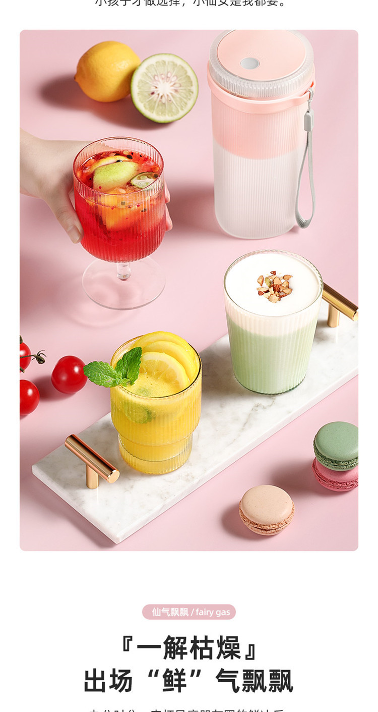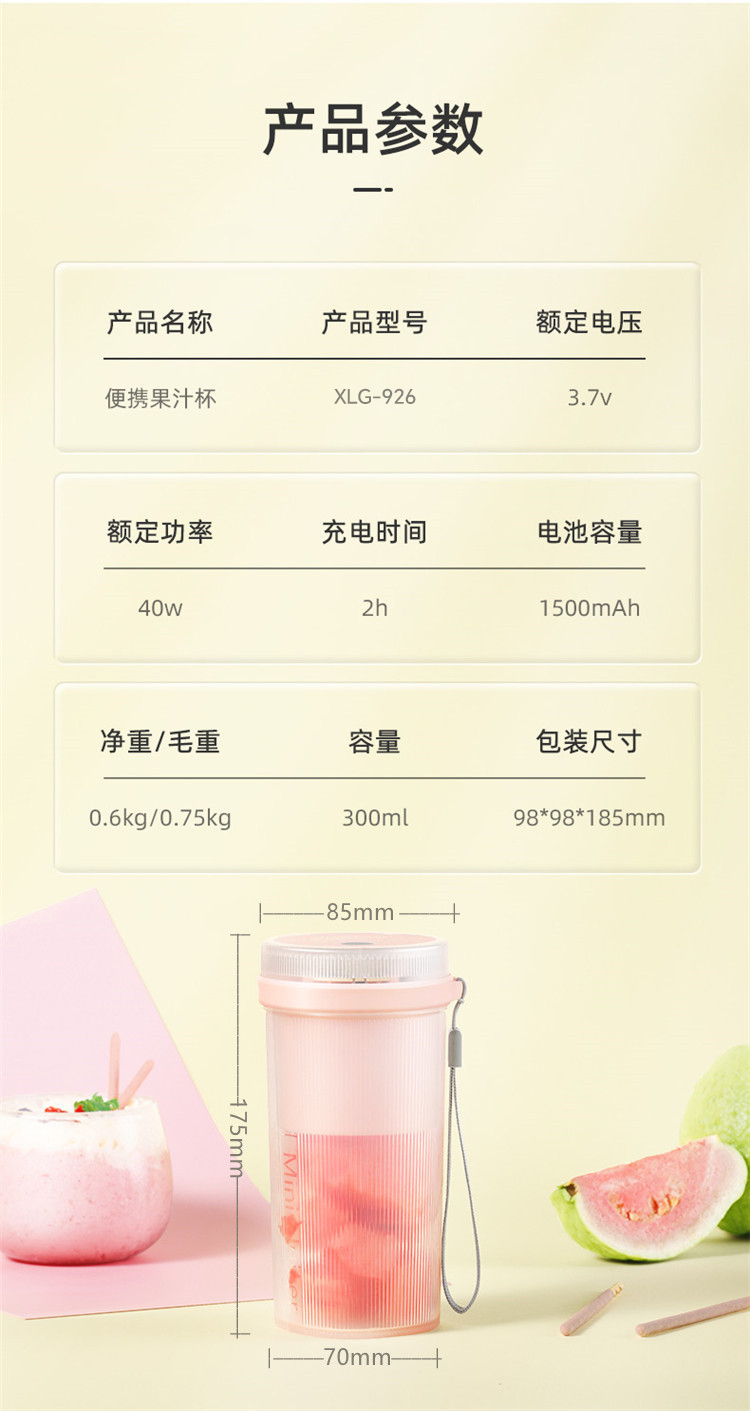 商品名称:J-欧博思 榨汁机 家用迷你便携式榨汁杯 果汁机 多功能料理机 搅拌机 充电式果汁杯 小巧便携容量300ml 型号XLG-926 条纹款-粉色