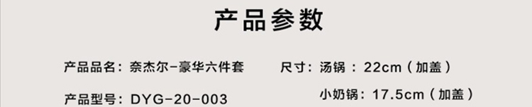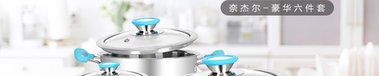 商品名称:T-萨汀莱斯 奈杰尔-豪华六件套厨房不锈钢奶锅汤锅多用锅烹饪炊具电磁炉燃气组合 厨具 锅具三件套+3个锅盖 (6套/箱)
