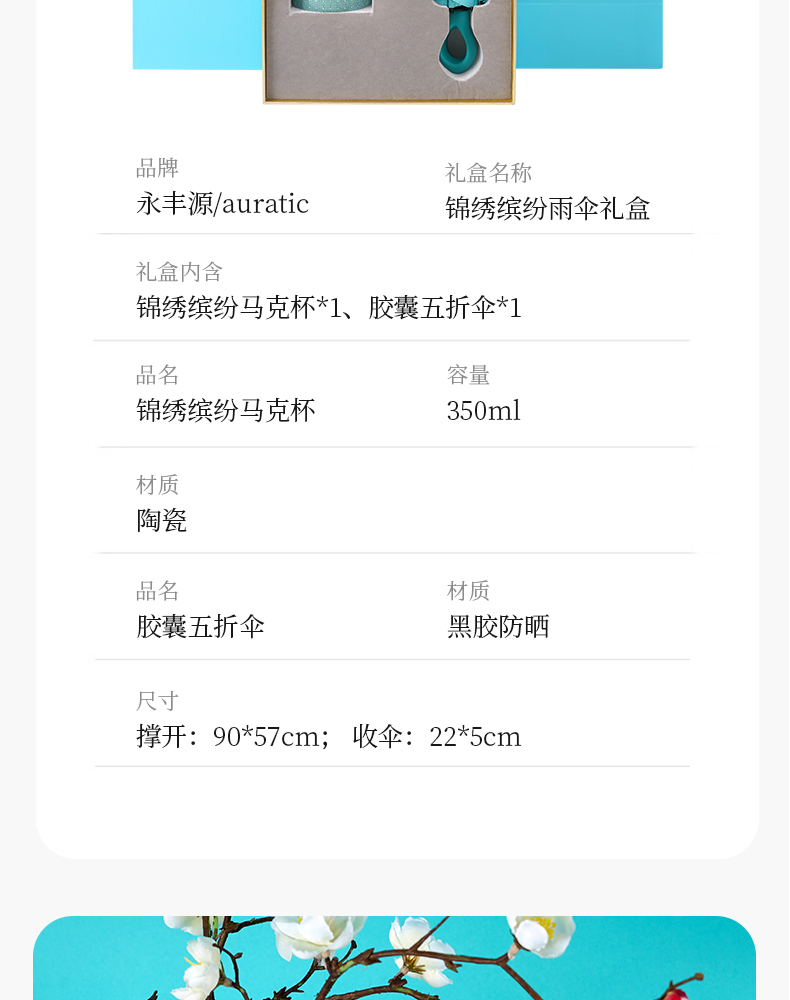 商品名称:永丰源(auratic)锦绣缤纷 350ml茶杯会议杯水杯和雨伞组合套装 16971889470004