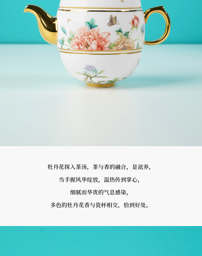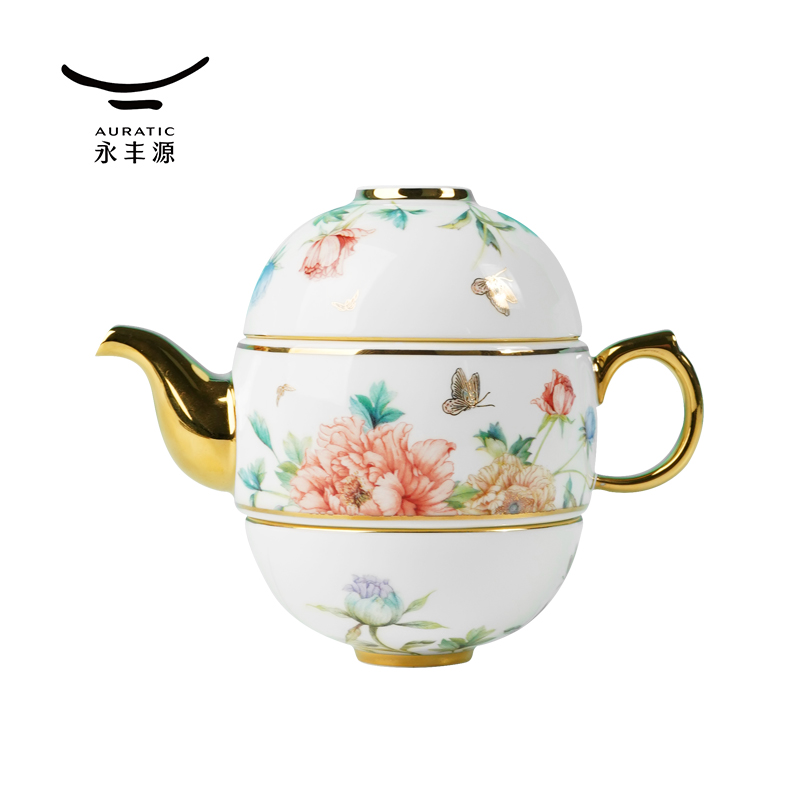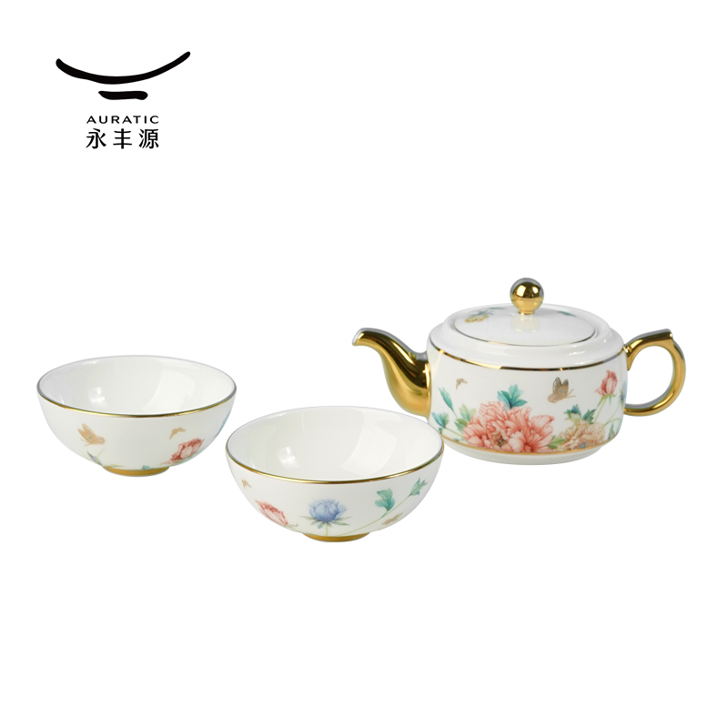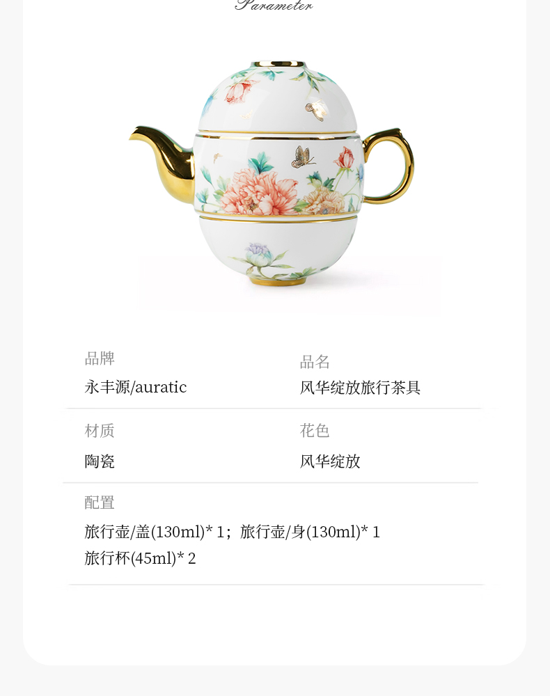 国瓷永丰源 风华绽放 4头陶瓷旅行茶具套装(2人位)旅行包 6930190900450