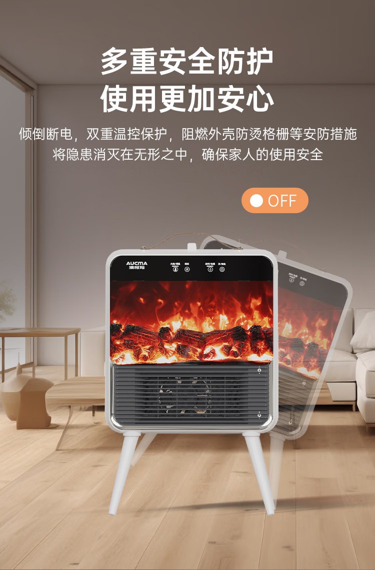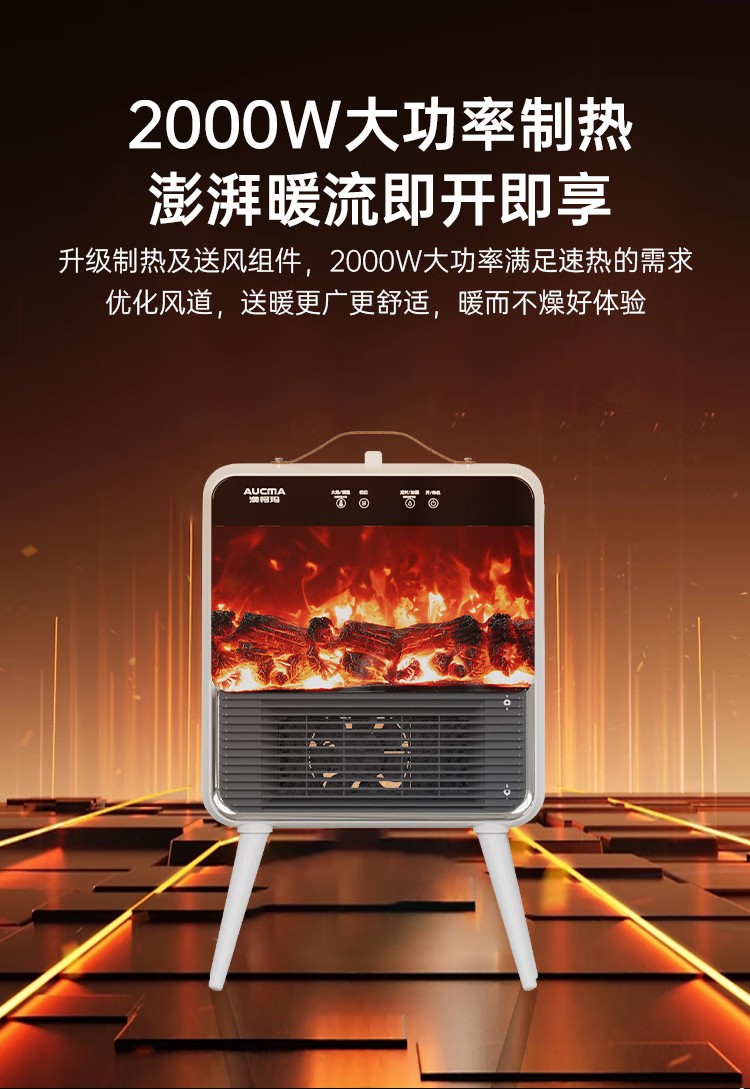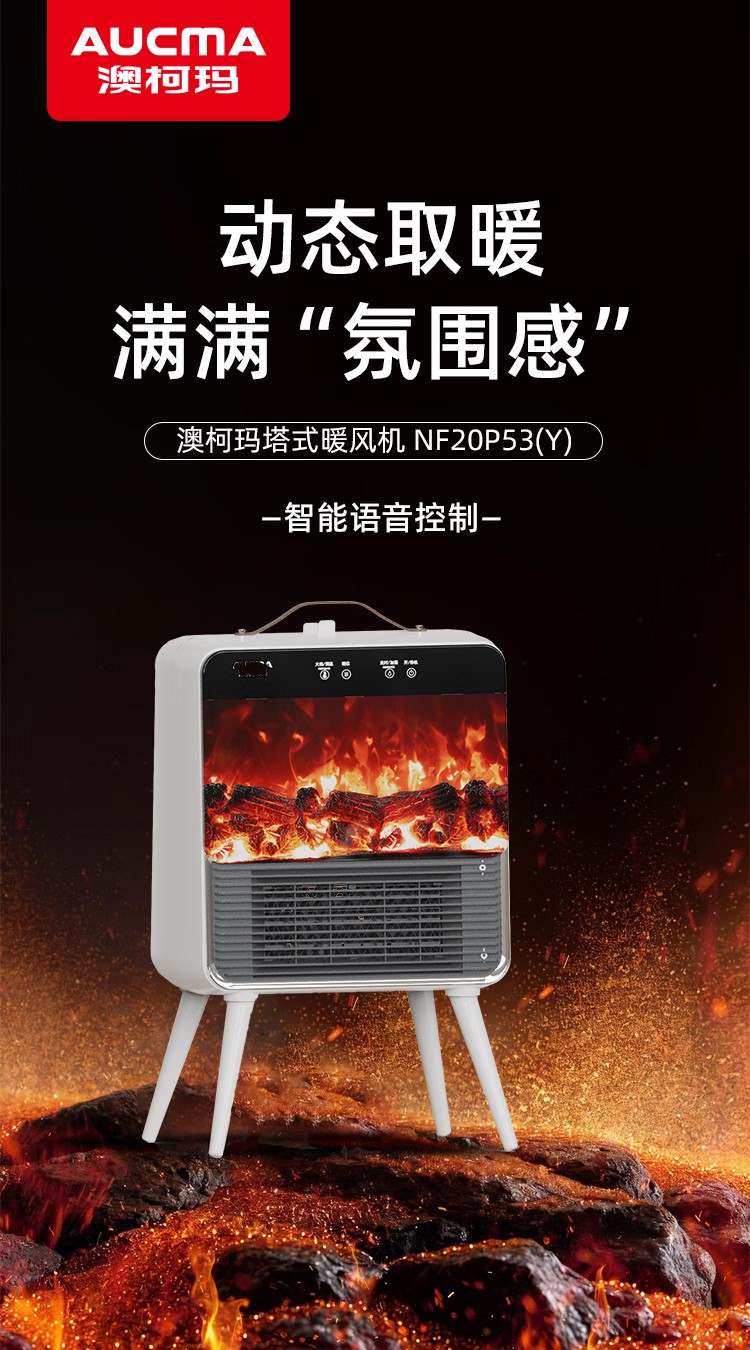 澳柯玛语音控制仿真火焰2000w塔式2档加热暖风机NF20P53(Y)