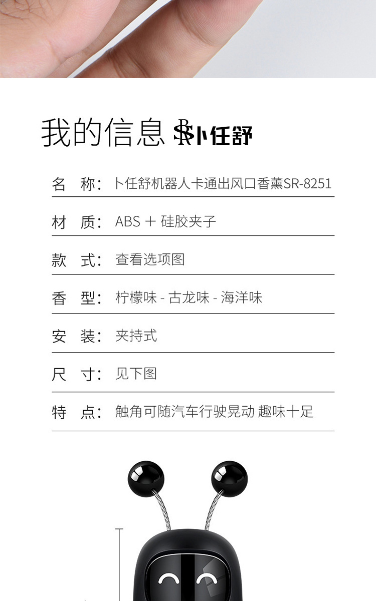 商品名称:卜任舒 机器人卡通出风口香薰 SR-8251