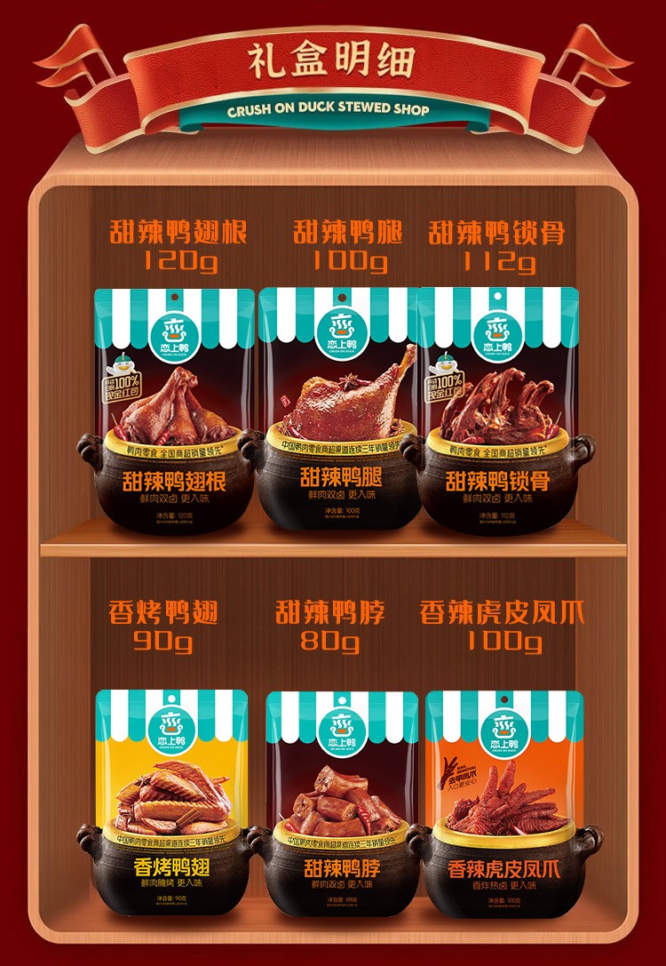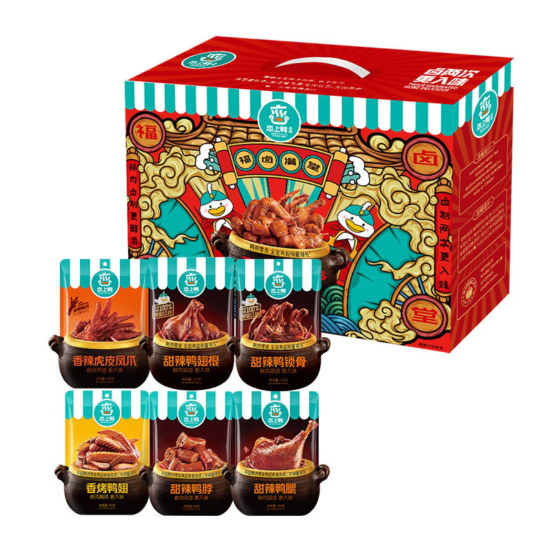 商品名称:恋上鸭 福卤满堂602款 鸭翅根 鸭腿等卤味 6922017064056 偏远另加运费