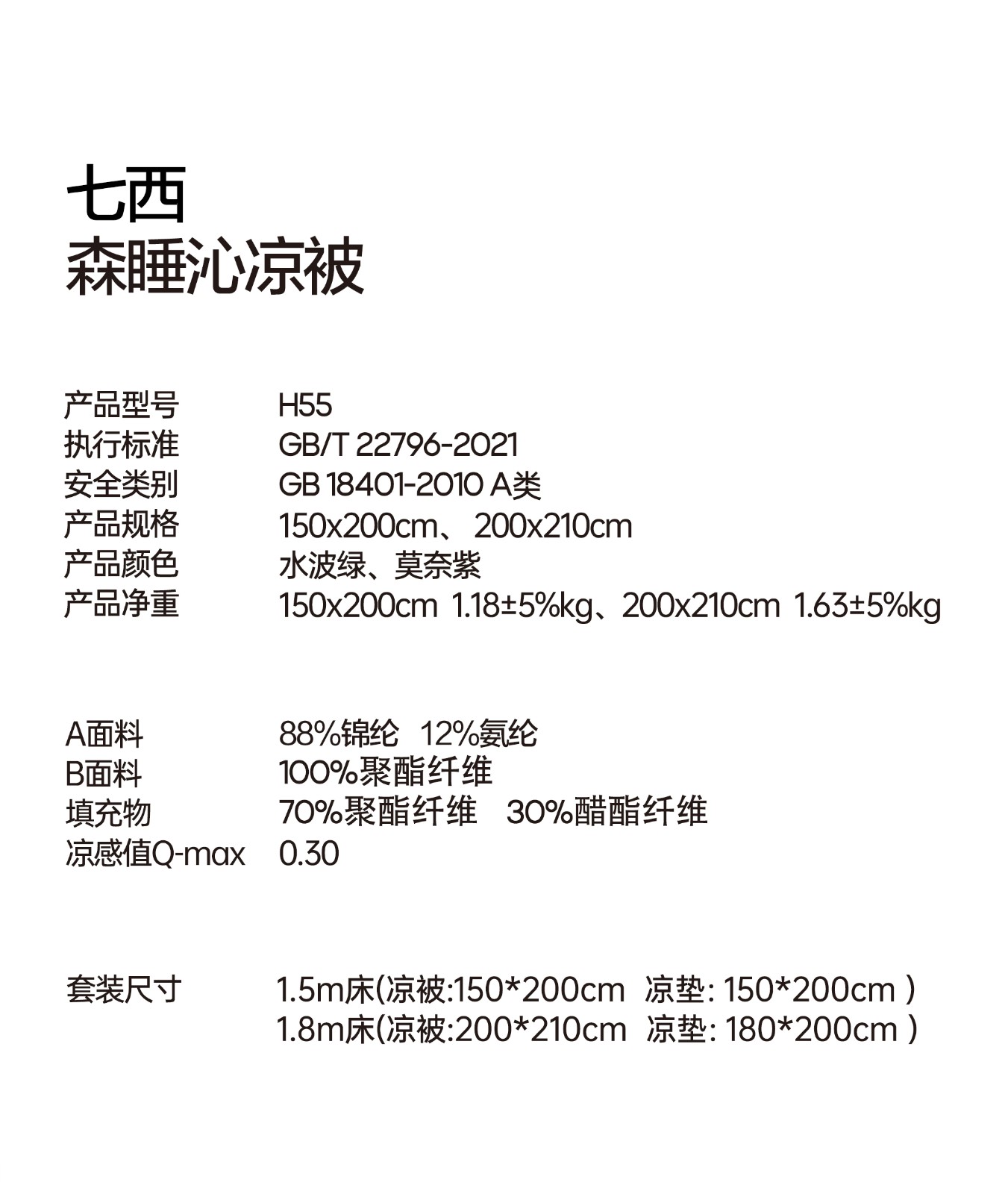商品名称:七西200*210cm森睡沁凉被H55水波绿 6978516260048 偏远另加运费