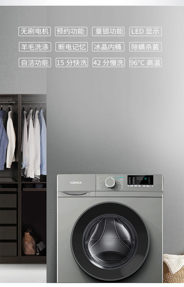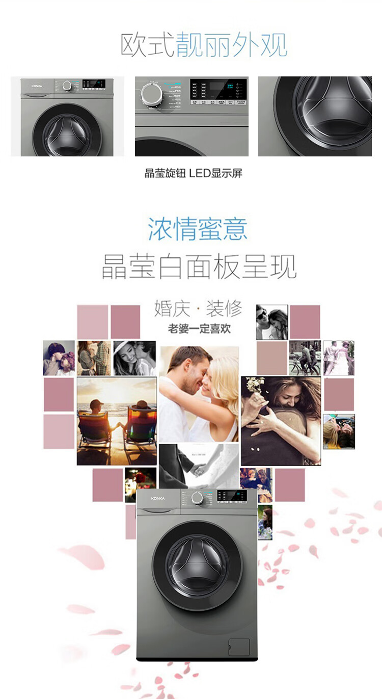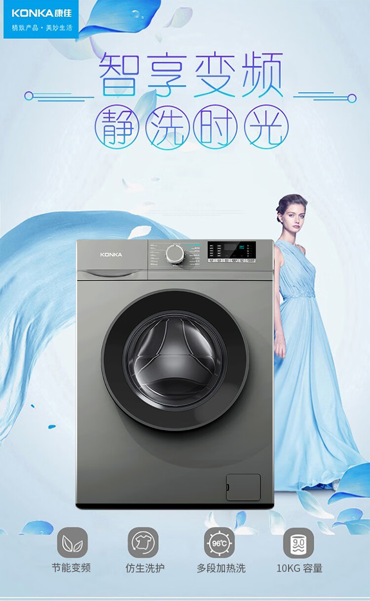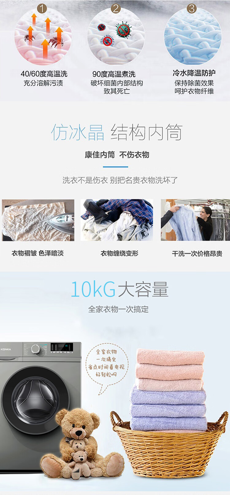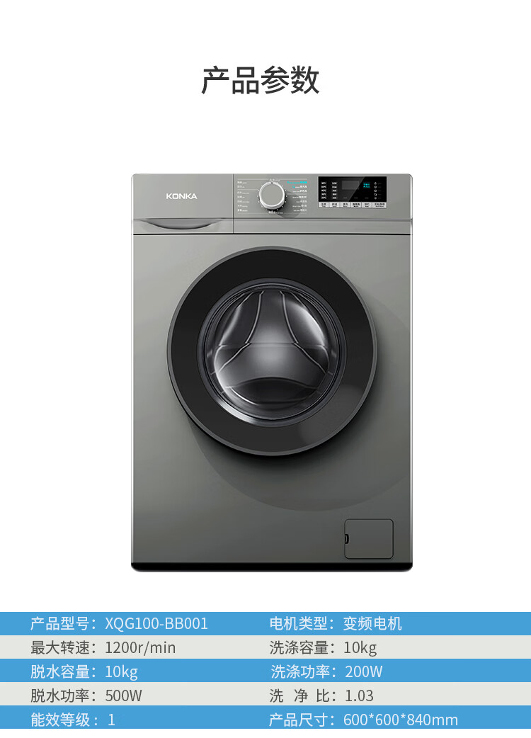 商品名称:j- 康佳 10kg洗衣机滚筒洗衣机一级能效智能变频家用洗衣机曼哈顿灰 送货上楼 XGQ100-BB001pro