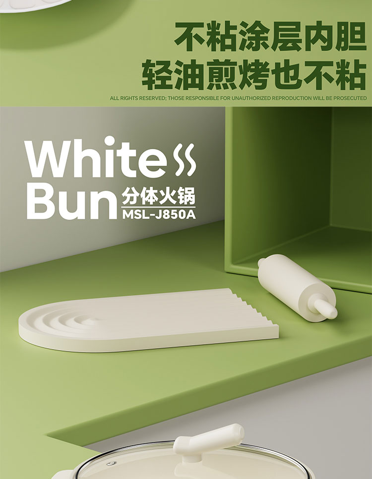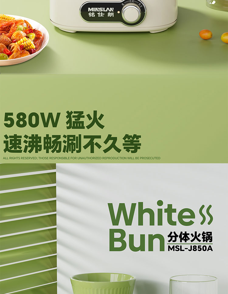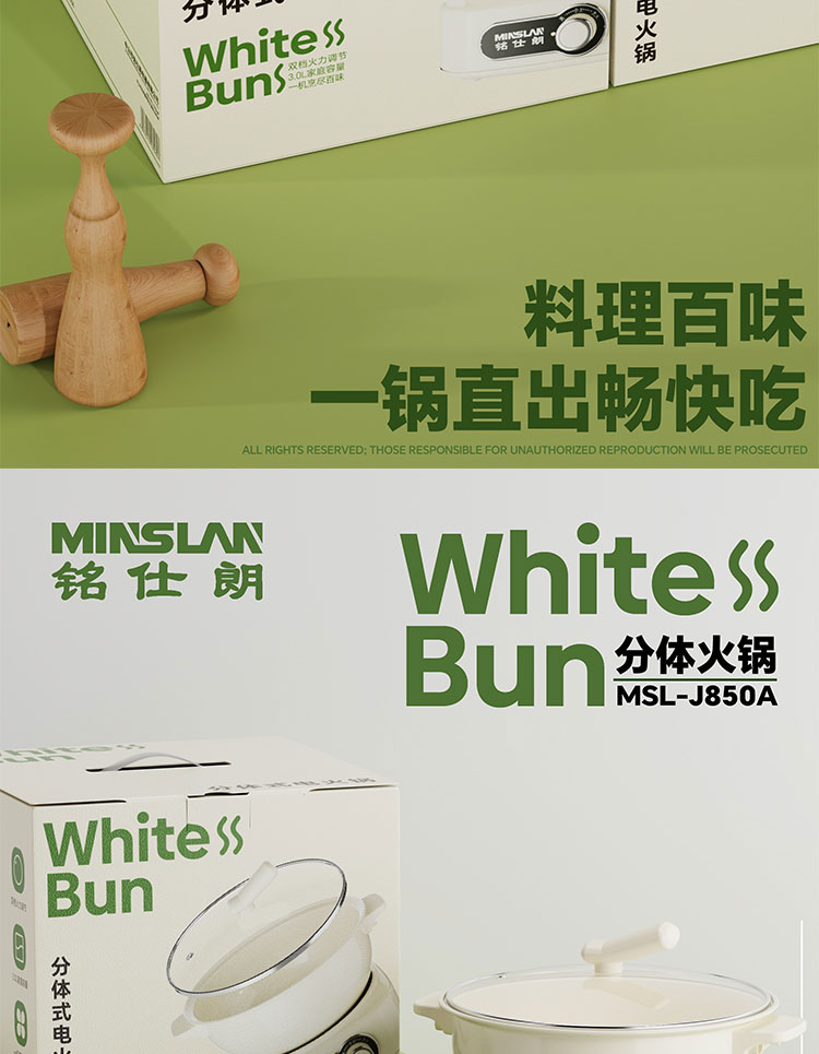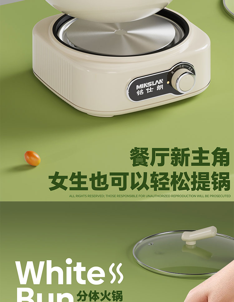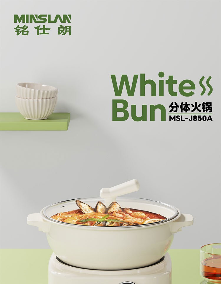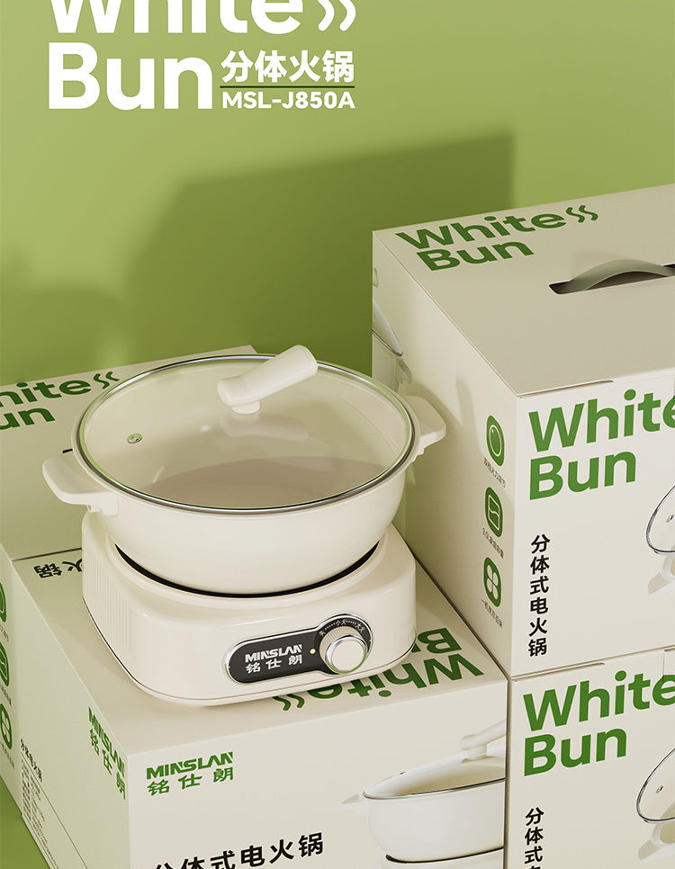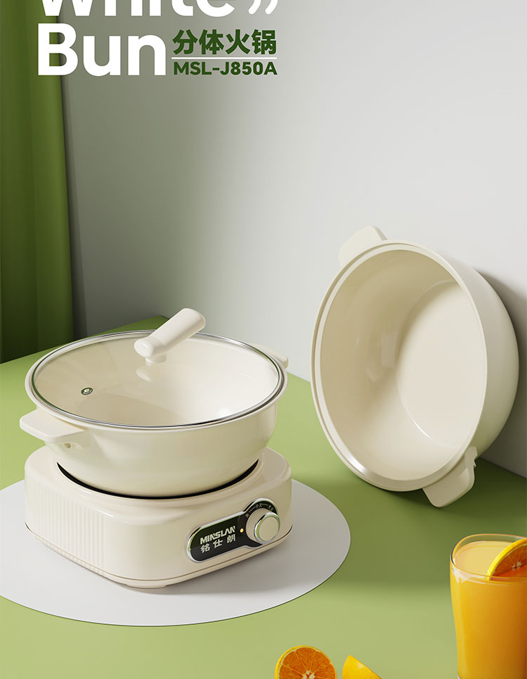 铭仕朗(MINSLAN) MSL-J850A 多功能分体式电火锅早餐家用便捷电煮锅 6977411130647