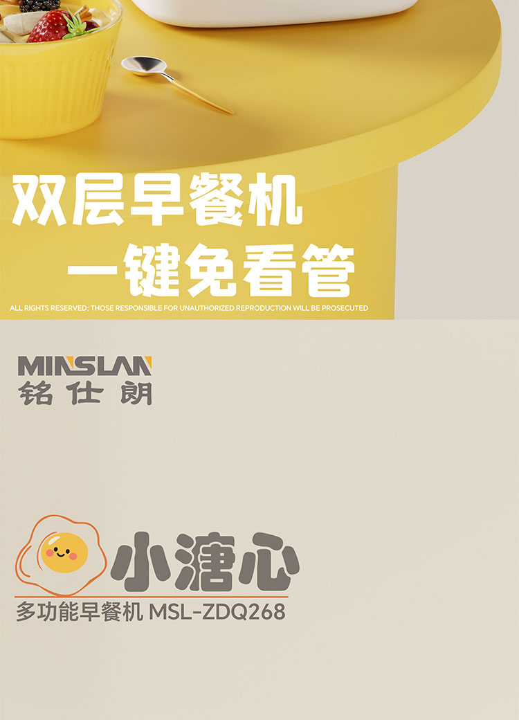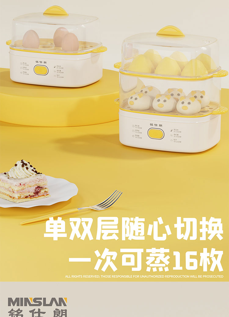 铭仕朗(MINSLAN) MSL-ZDQ268 煮蛋器蒸蛋器自动断电家用早餐神器多功能双层电蒸锅鸡蛋羹 6977411130623