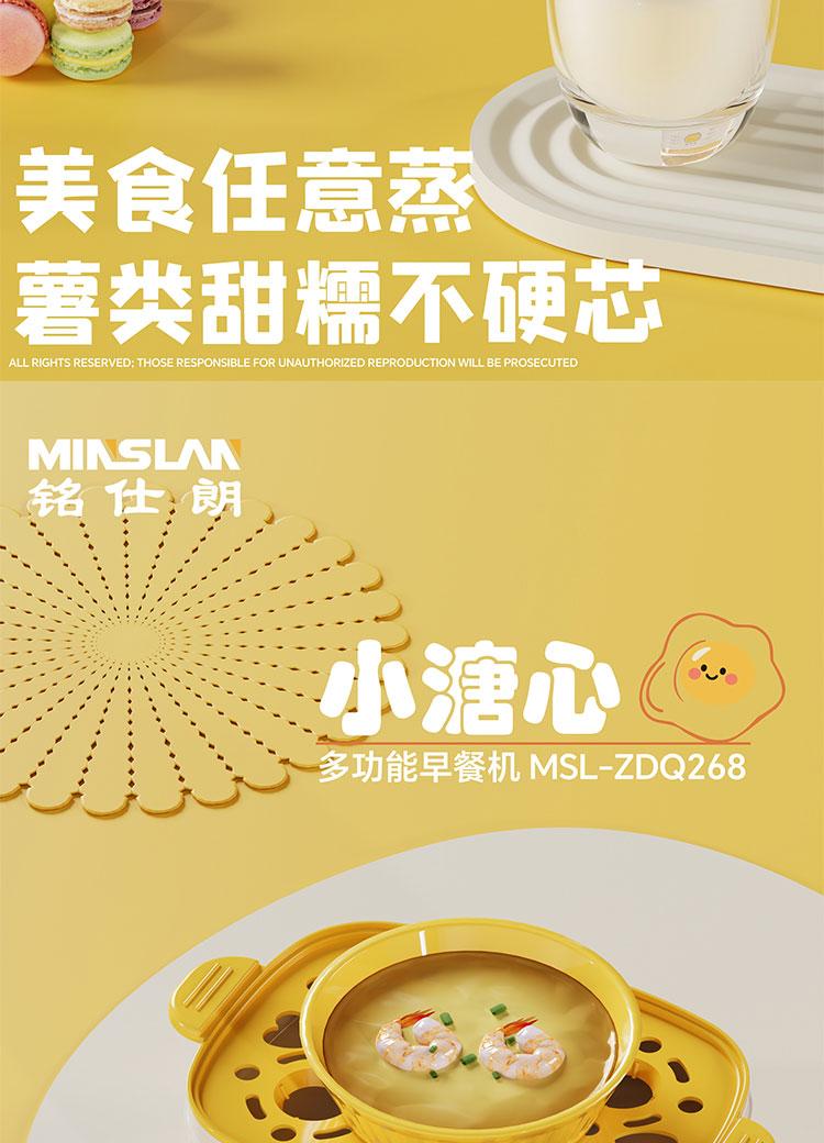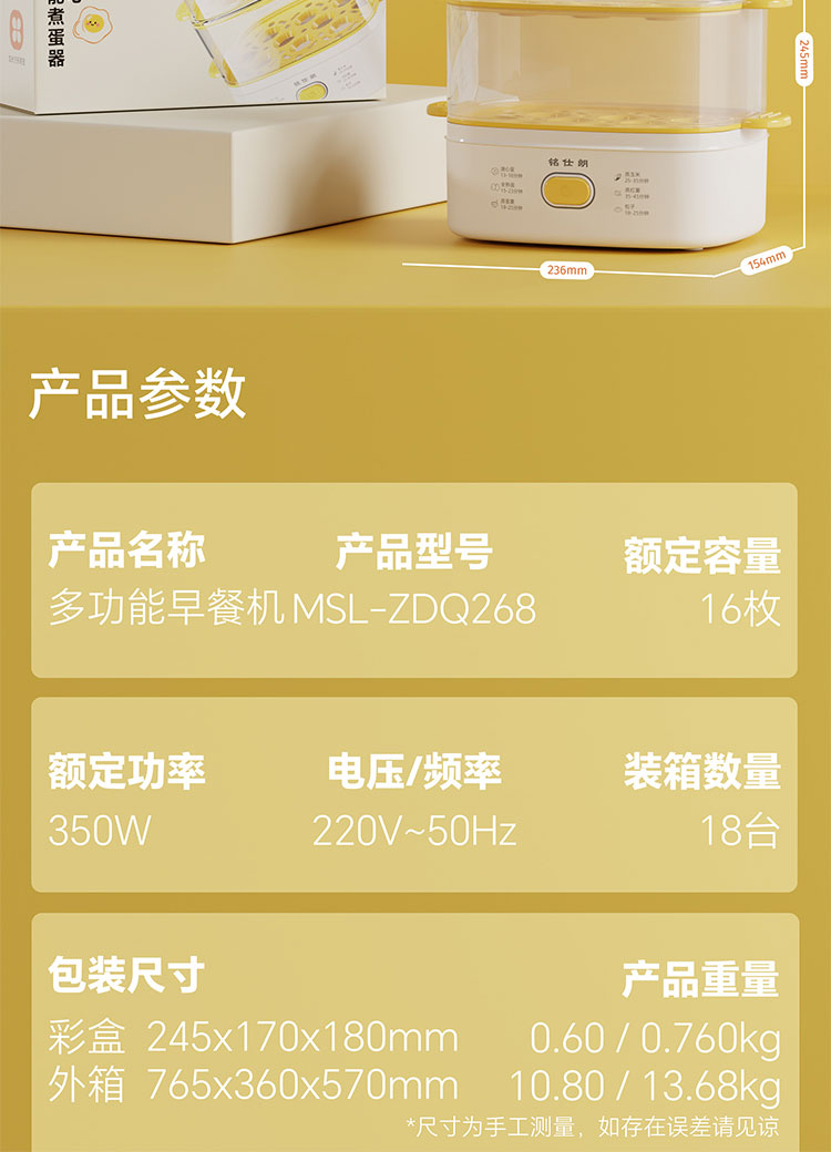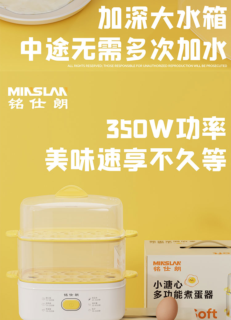 商品名称:铭仕朗(MINSLAN) MSL-ZDQ268 煮蛋器蒸蛋器自动断电家用早餐神器多功能双层电蒸锅鸡蛋羹 6977411130623