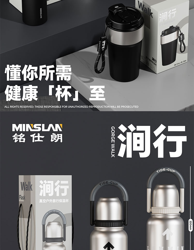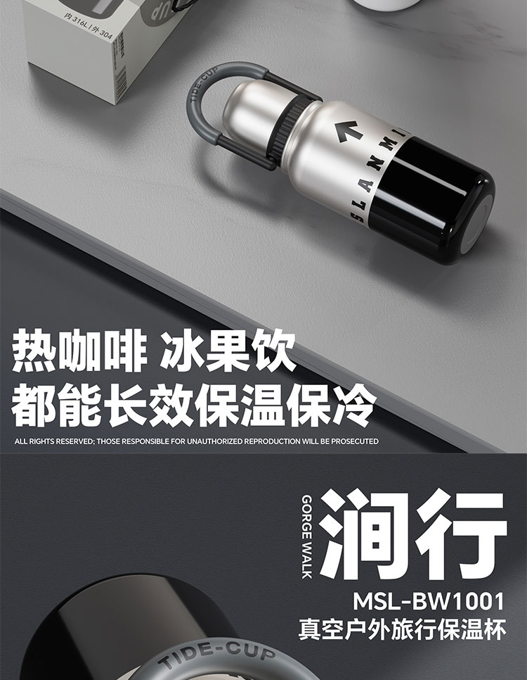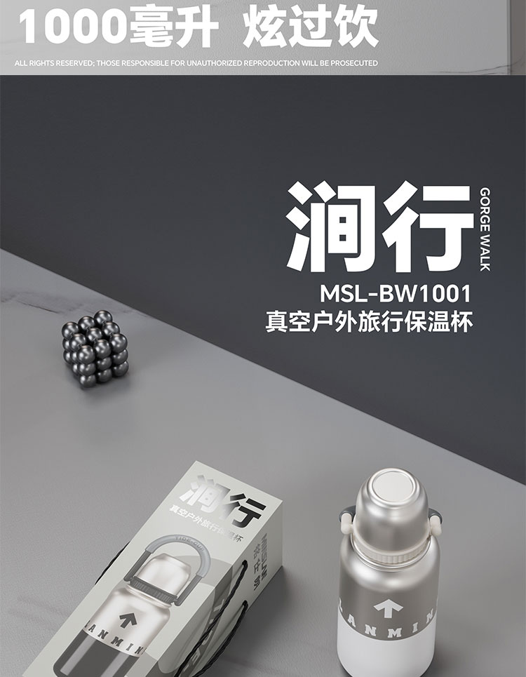 铭仕朗(MINSLAN) MSL-BW1001 大容量不锈钢保温水杯户外运动水杯 1.0L 6977411130531