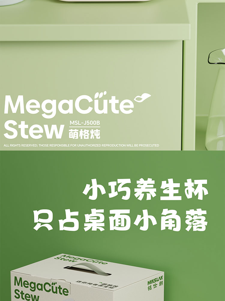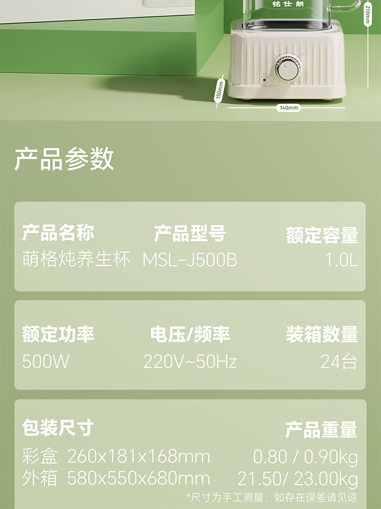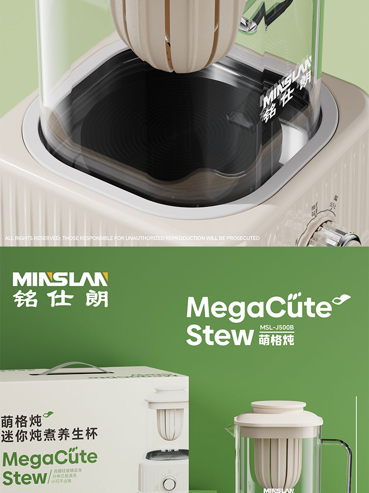 商品名称:铭仕朗(MINSLAN) 萌格炖全自动多功能养生壶煮茶器 家用迷你的养生壶. MSL-J500B小方杯 6977411130494