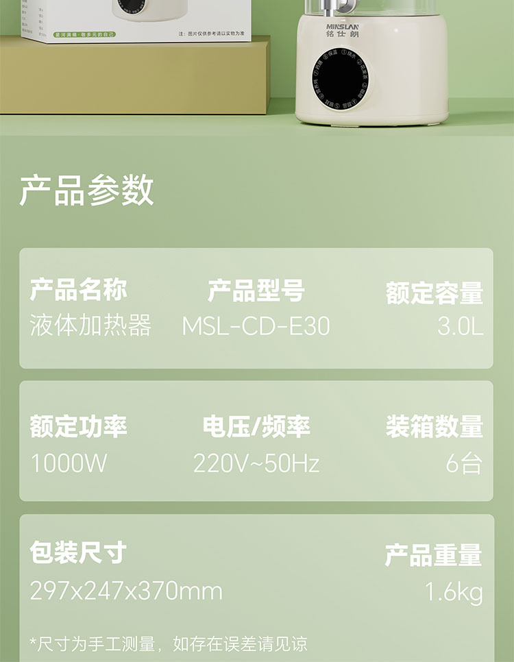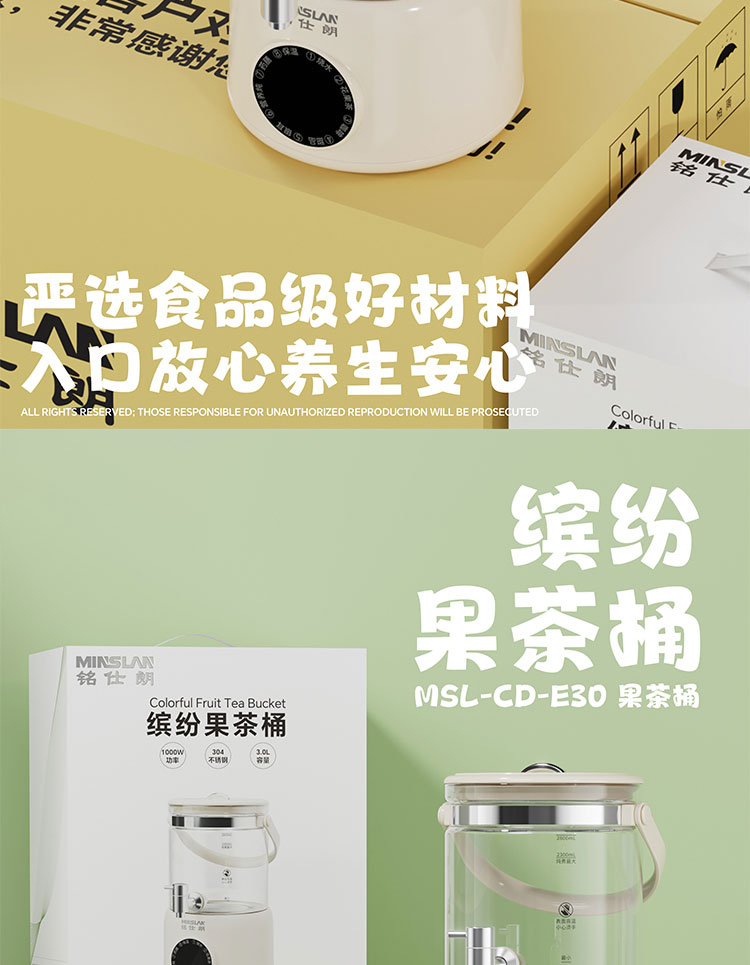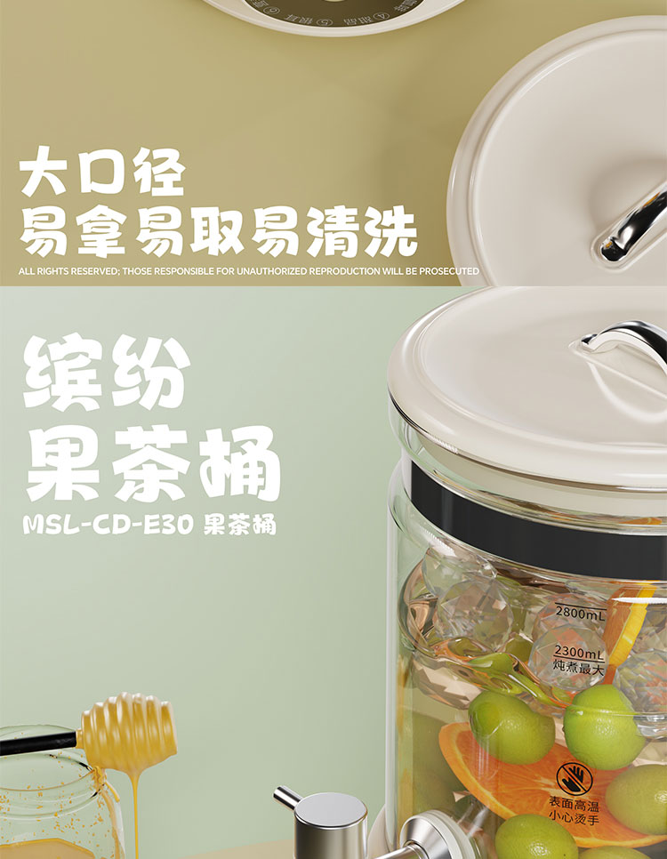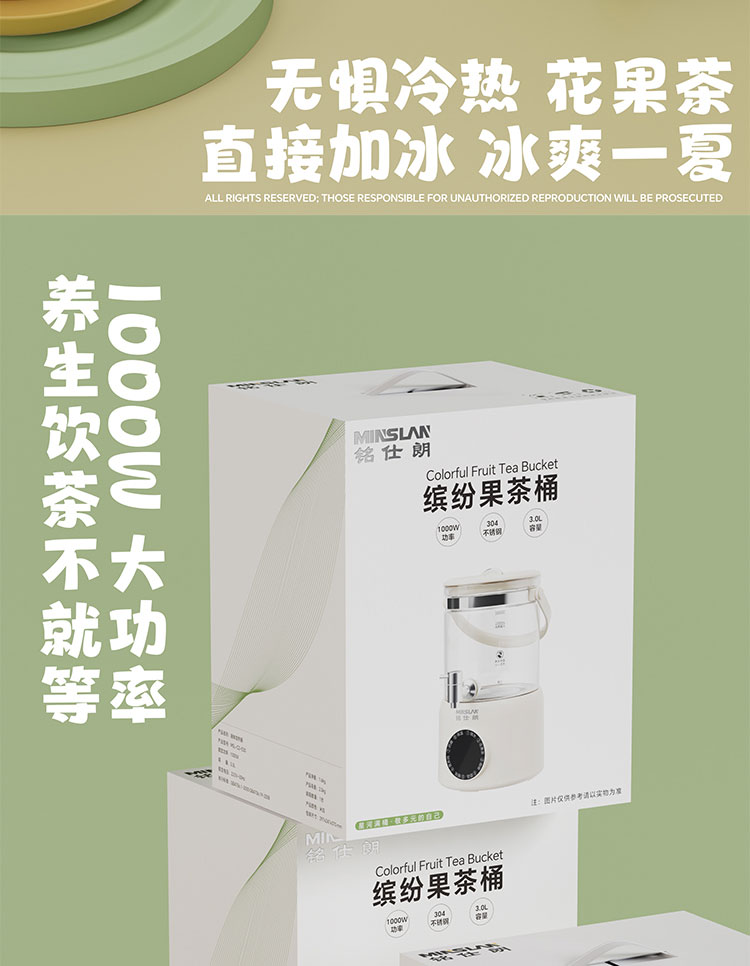 商品名称:铭仕朗(MINSLAN) 缤纷果茶桶全自动恒温电热水壶 家用多功能养生壶花茶桶. MSL-CD-E30 3L 6977411130456