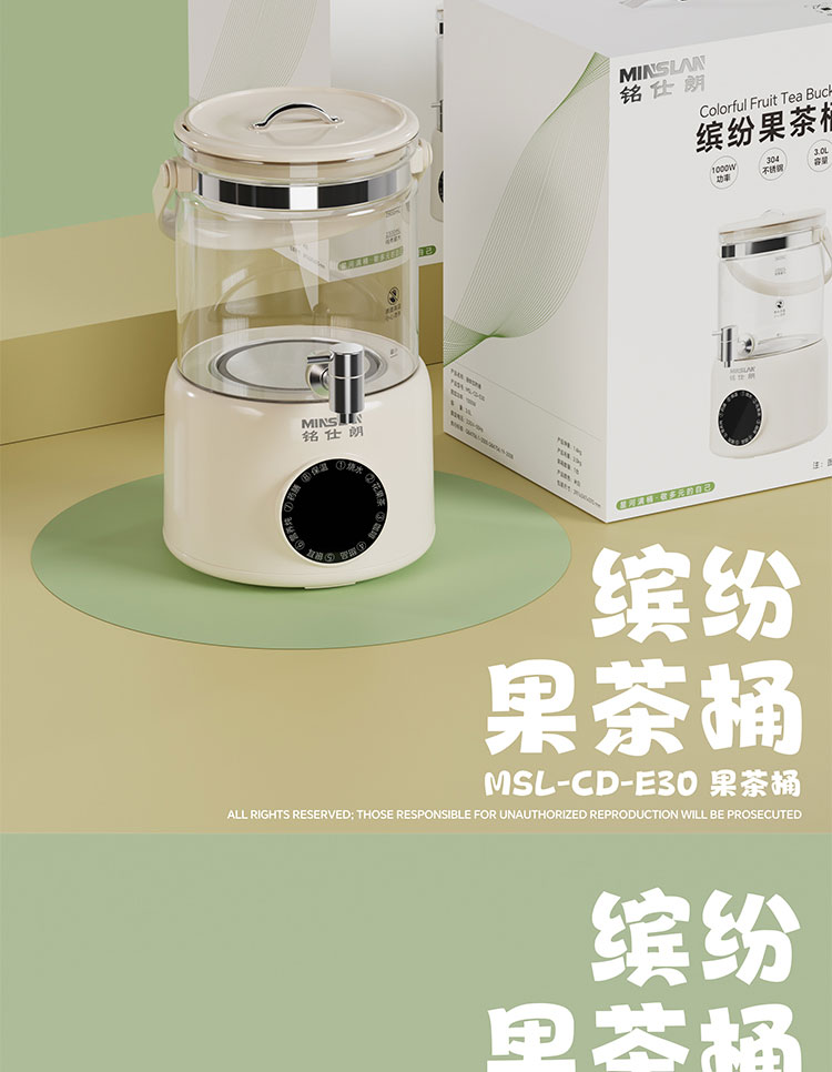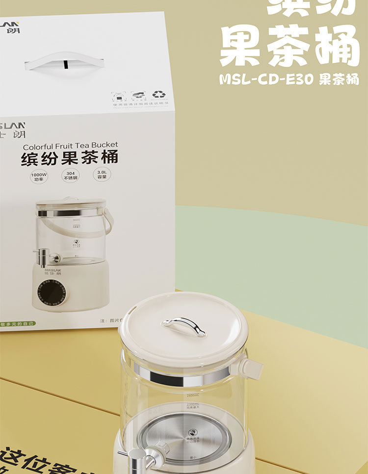 铭仕朗(MINSLAN) 缤纷果茶桶全自动恒温电热水壶 家用多功能养生壶花茶桶. MSL-CD-E30 3L 6977411130456