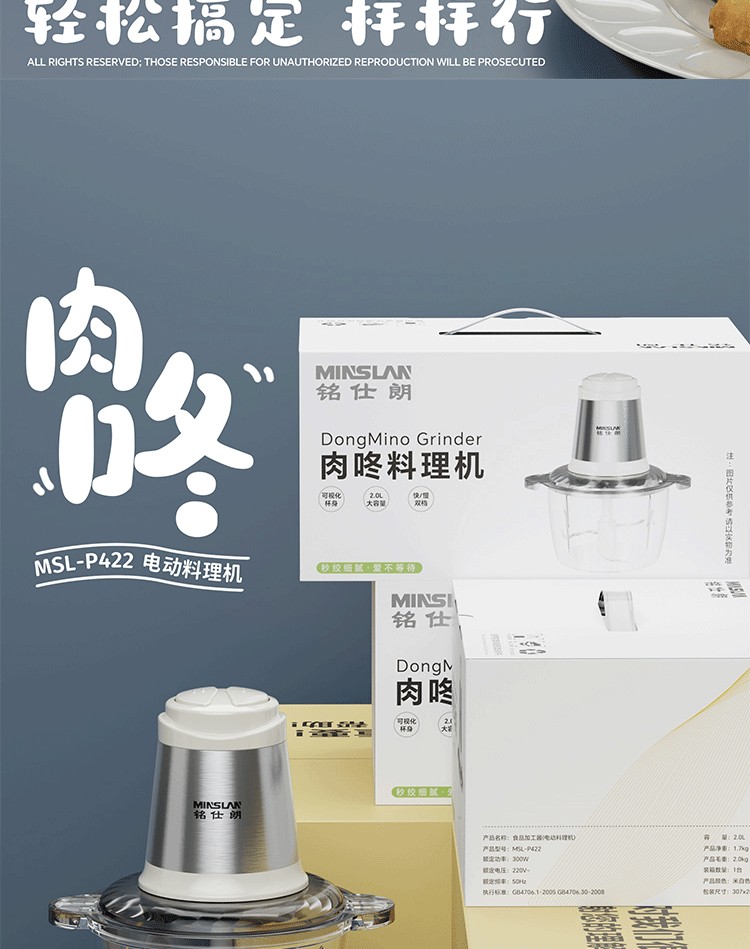 商品名称:铭仕朗(MINSLAN)肉咚多功能电动绞肉机真空料理机包子机. MSL-P422 6977411130395