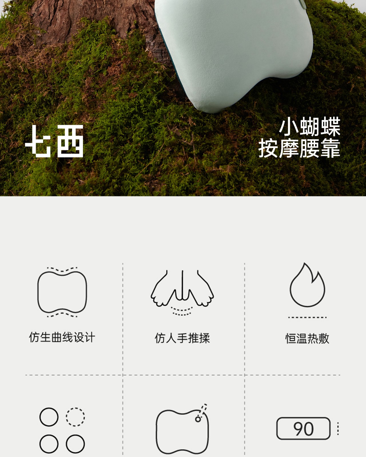 七西小蝴蝶按摩腰靠7C-R32 苏格兰绿 6978516260161 偏远另加运费