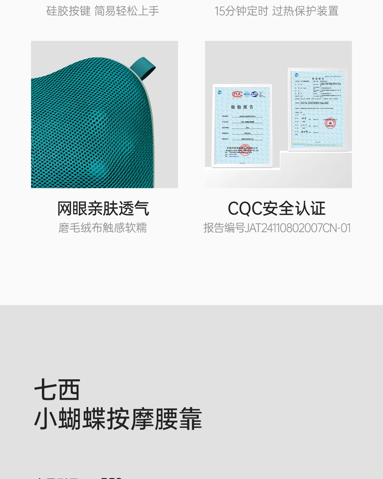 商品名称:七西小蝴蝶按摩腰靠7C-R32 苏格兰绿 6978516260161 偏远另加运费