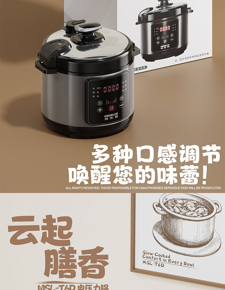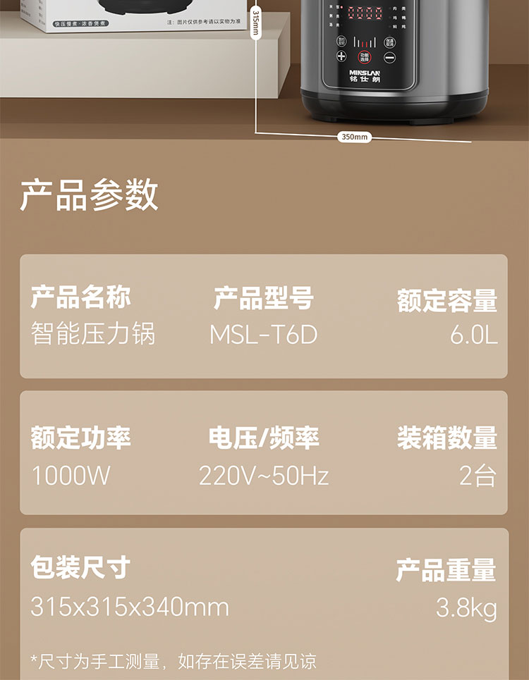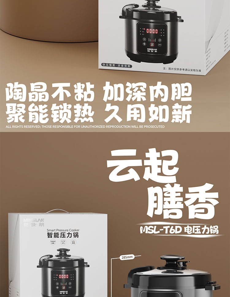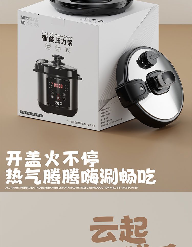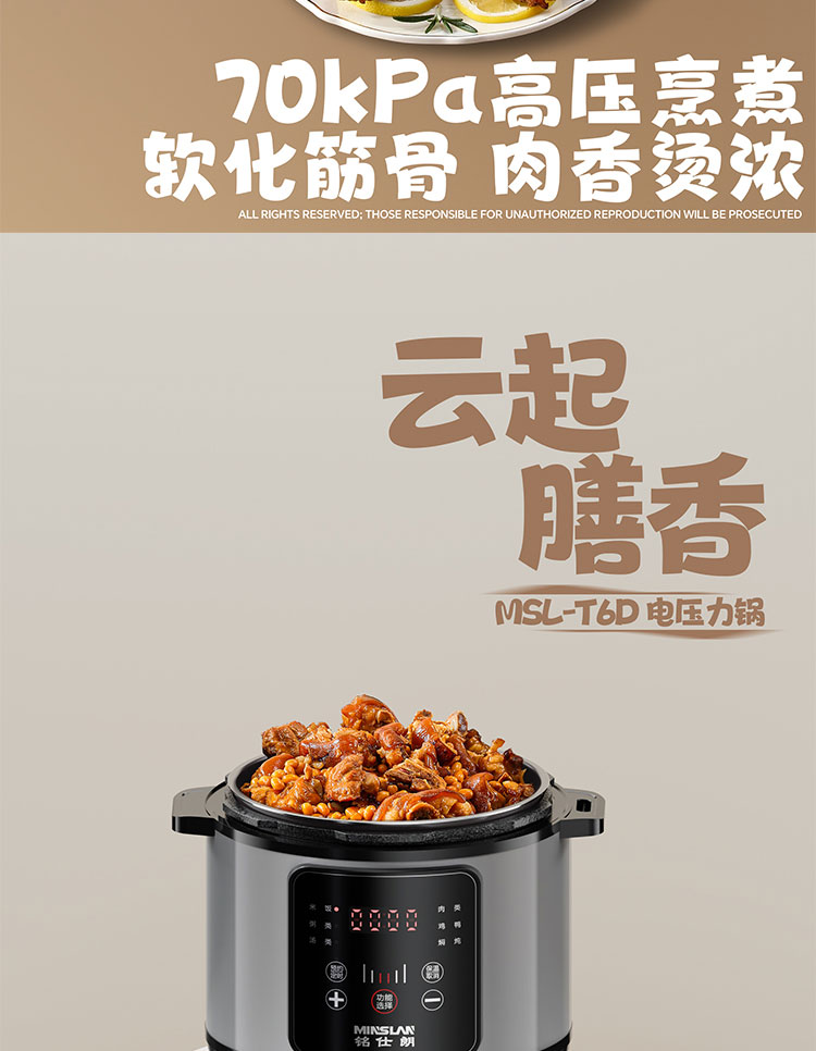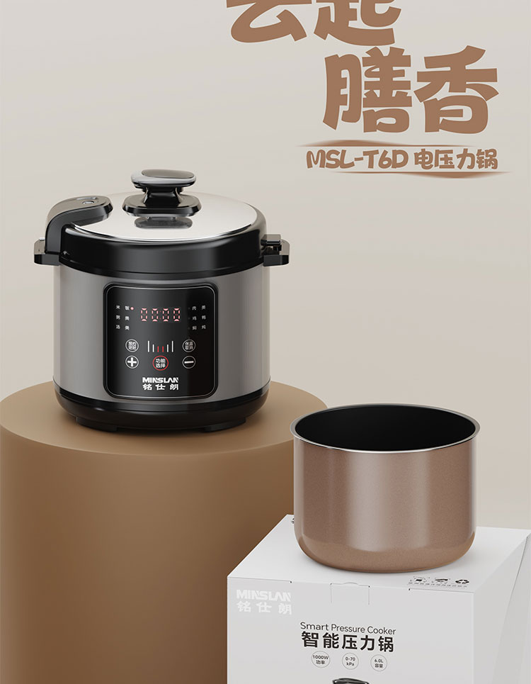 商品名称:铭仕朗(MINSLAN) 智能6L电饭煲 多功能六升电压力锅家用. MSL-T6D 6977411130371