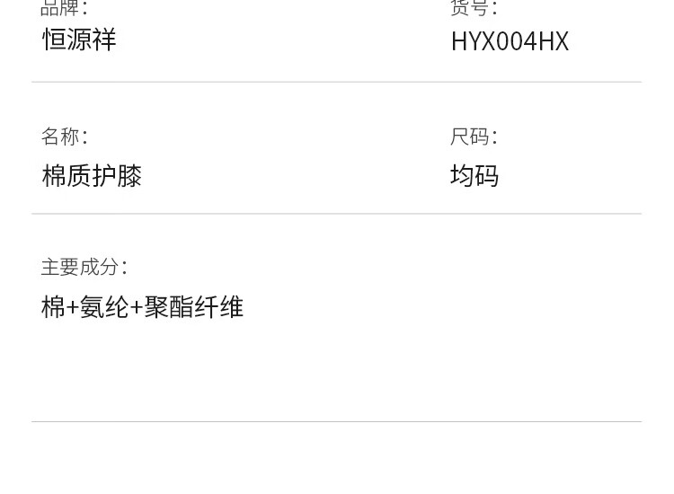 商品名称:(活动)恒源祥棉质护膝长款HYX004HX 灰色