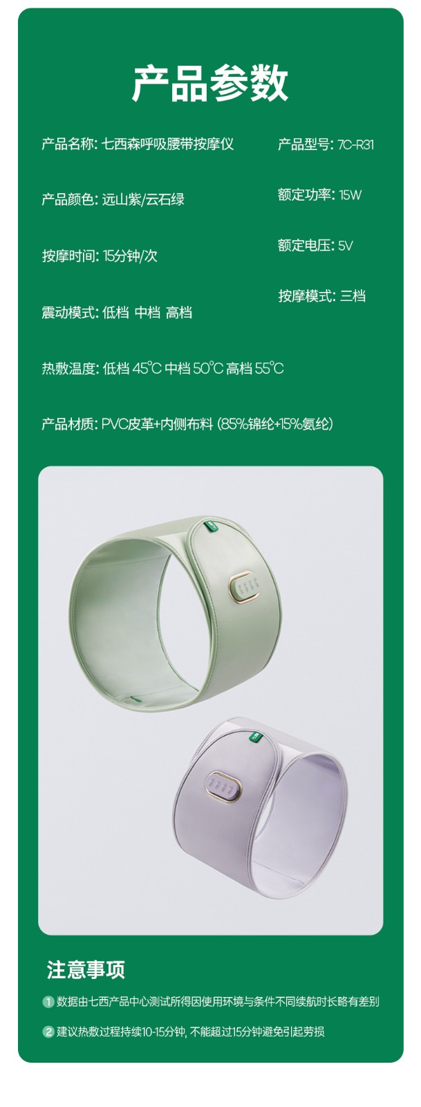 商品名称:七西腰腹按摩带7C-R31 云石绿 6978516261342 偏远另加运费