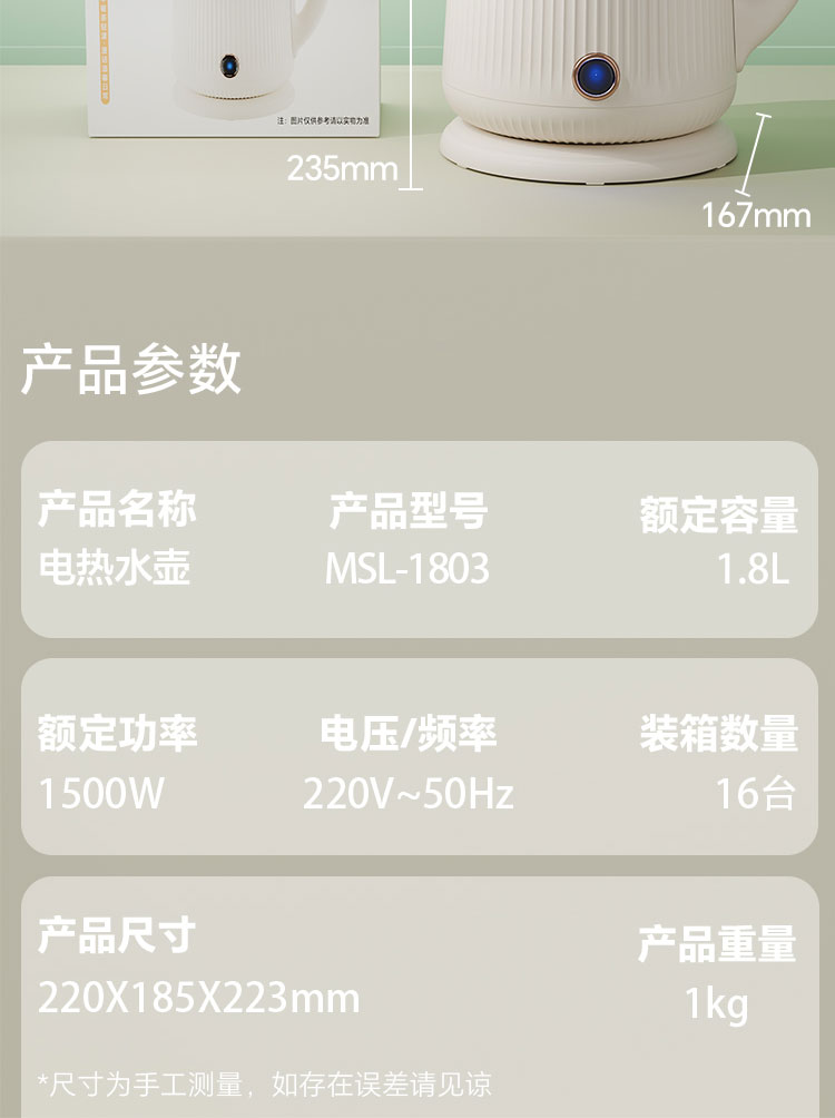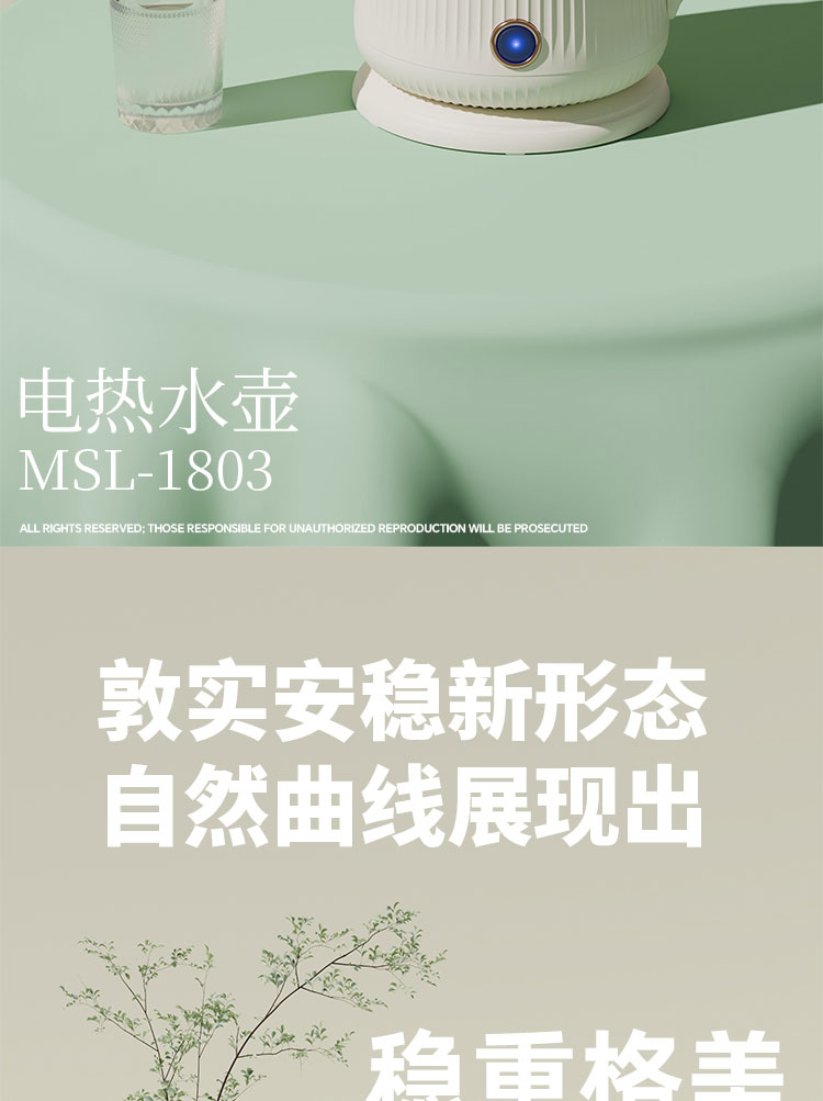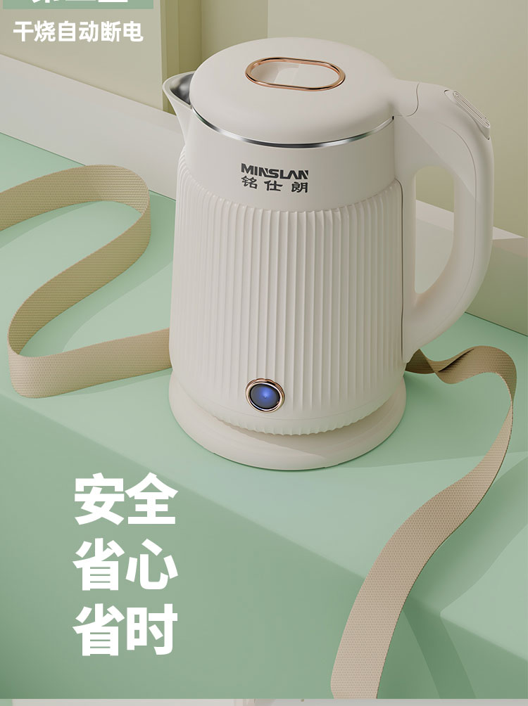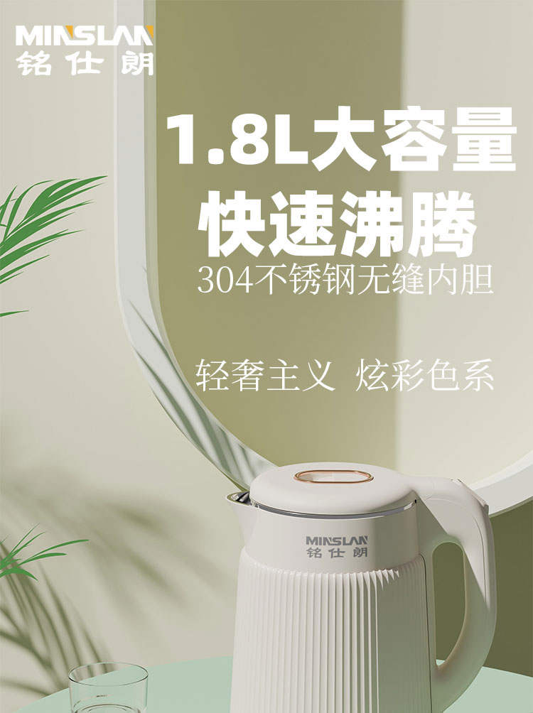 商品名称:铭仕朗(MINSLAN) 电热水壶1.8L烧水壶开水壶电水壶自动断电恒温保温一体家用. MSL-1803 乳白色 1.8L 6977411130319