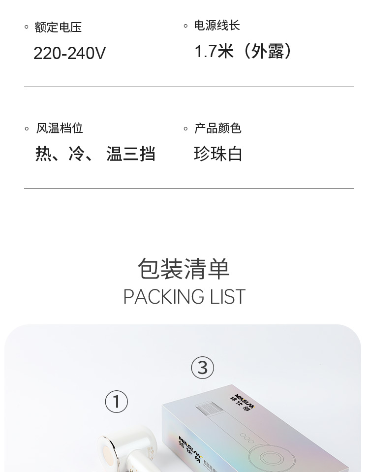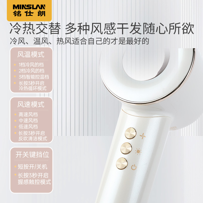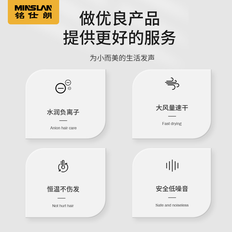 商品名称:铭仕朗高速吹风机不伤发 超静音速干大风力护发 家用宿舍吹风筒大功率. SY01 6977411130159