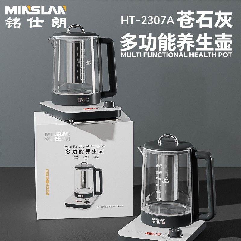 铭仕朗(MINSLAN)养生壶 玻璃面板烧水壶 304不锈钢恒温煮茶器 加大滤网 .HT-2307A 深灰色 1.5L 697741130166