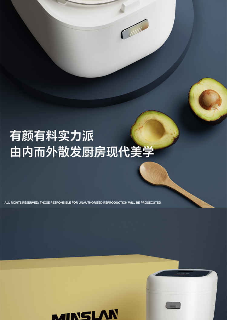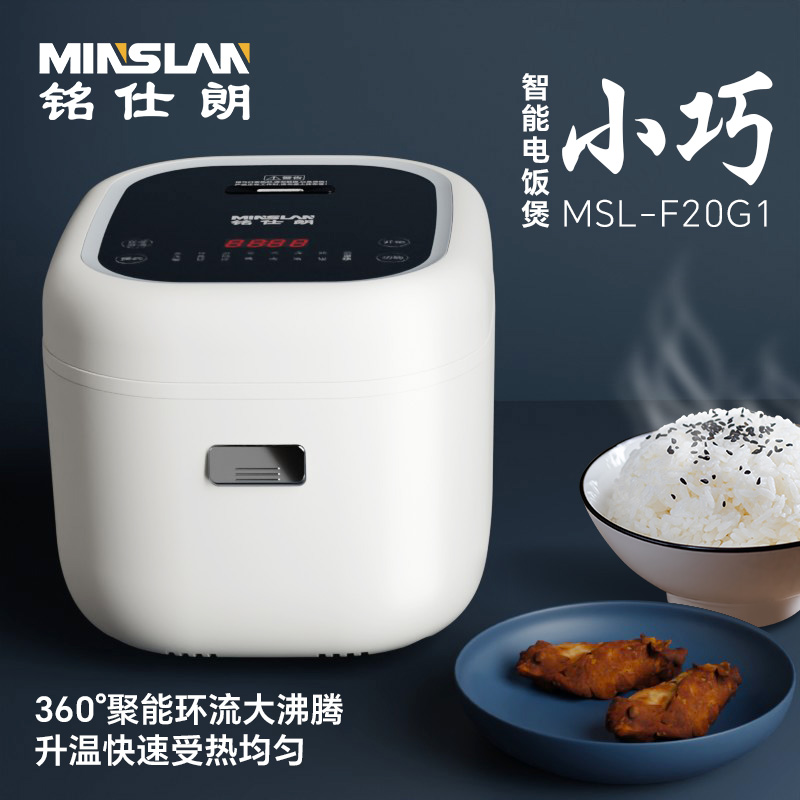 铭仕朗(MINSLAN) 电饭煲家用2升小型迷你多功能1-4人不粘锅智能电饭锅. MSL-F20G1 白色 2L 6977411130197