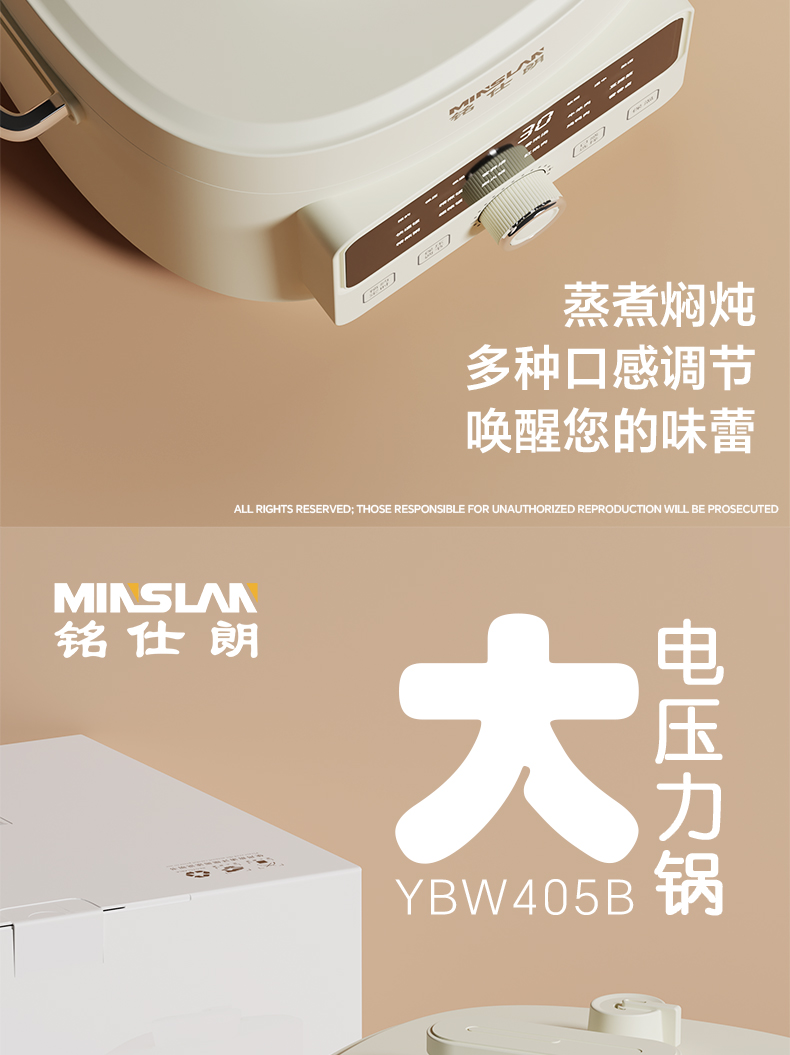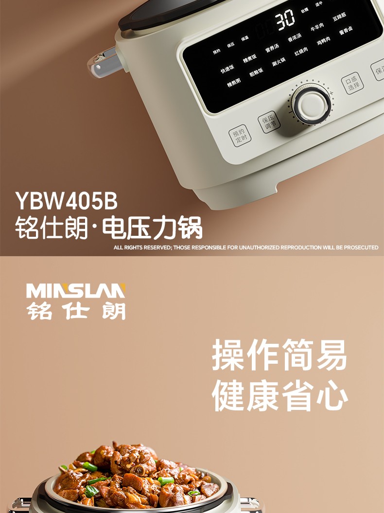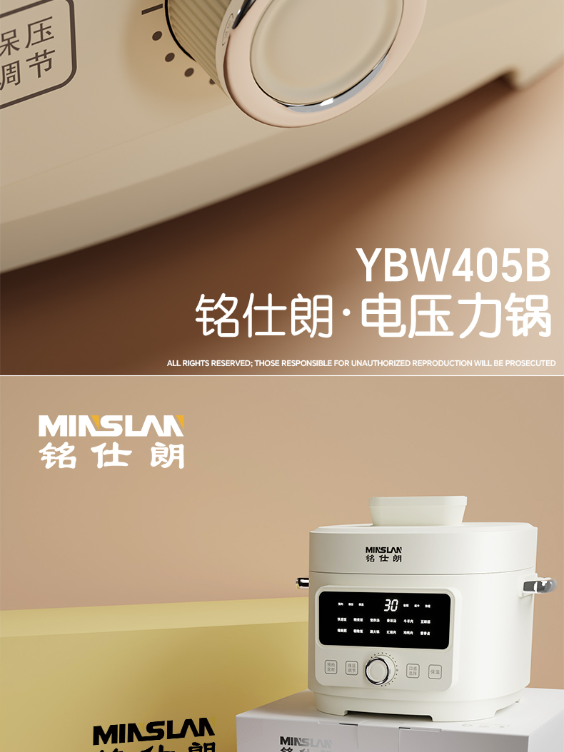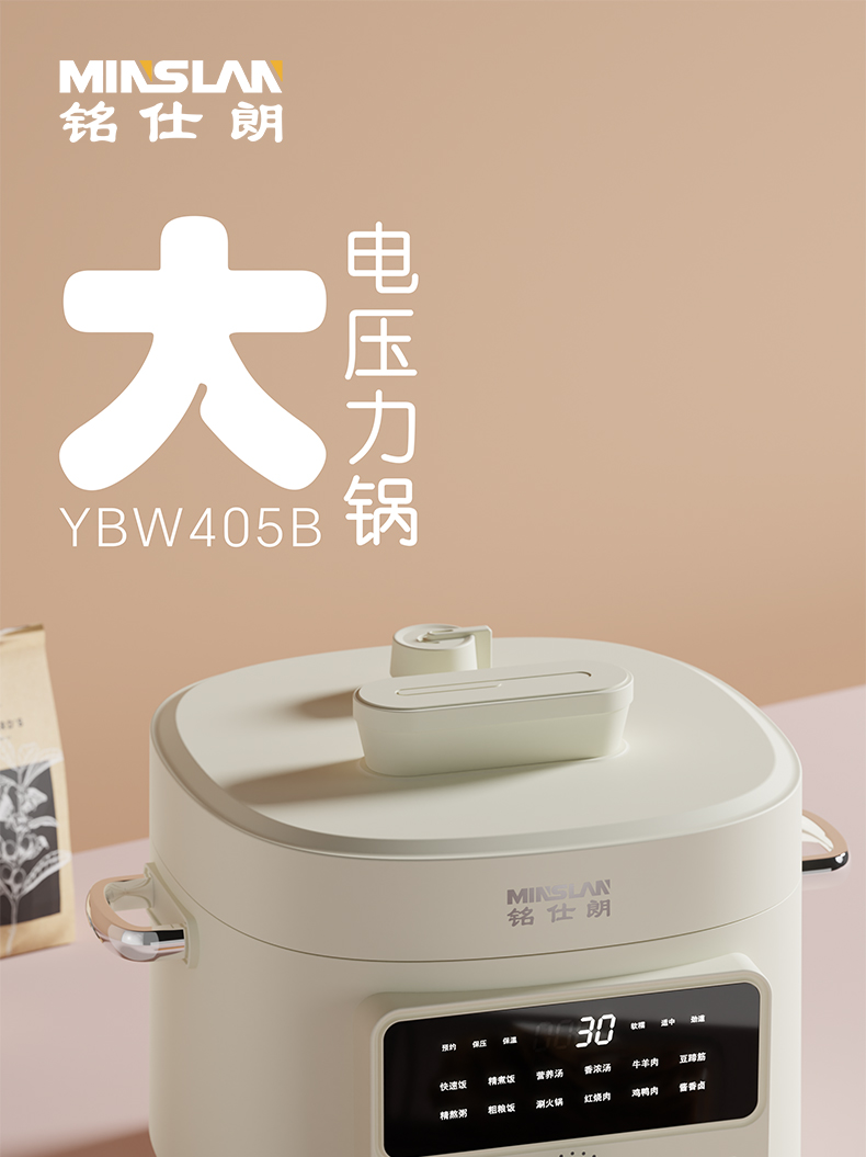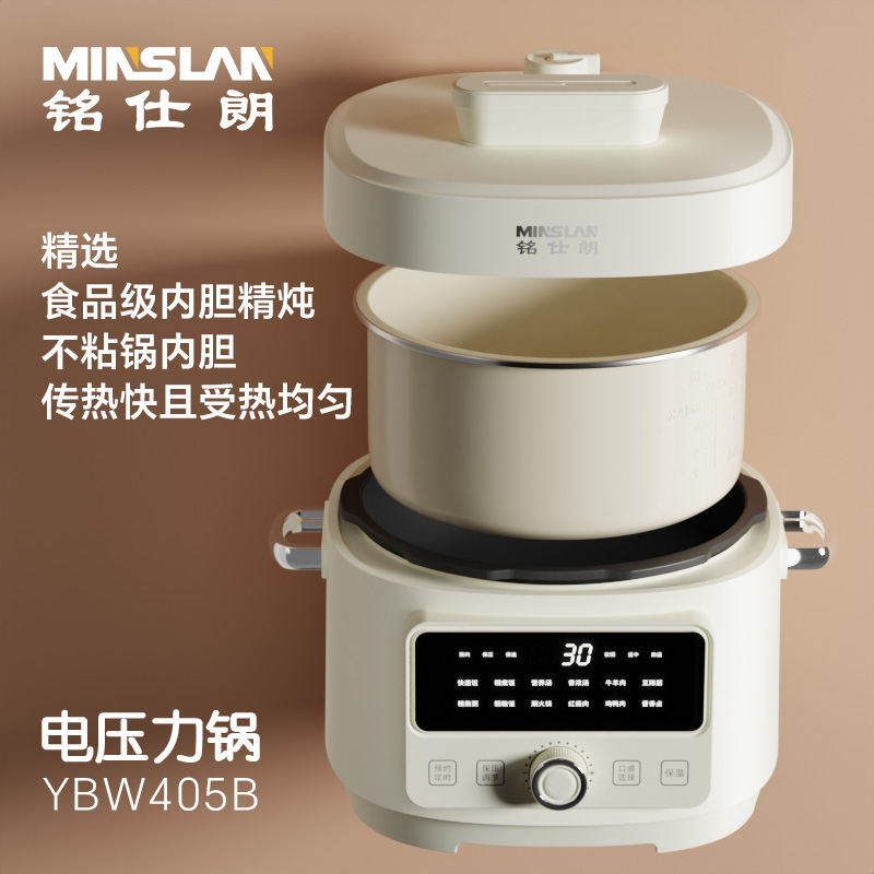 商品名称:铭仕朗(MINSLAN) 电压力锅 电压力锅家用新款4L全自动智能预约多功能高压锅饭锅. YBW405B 6977411130081