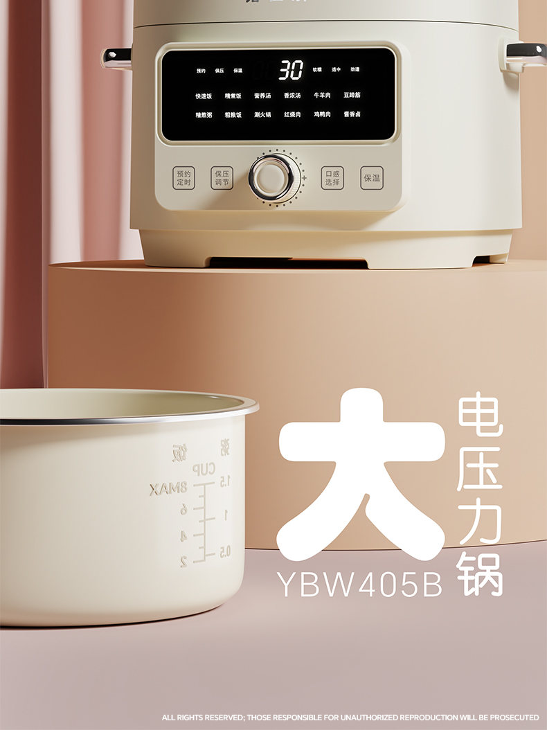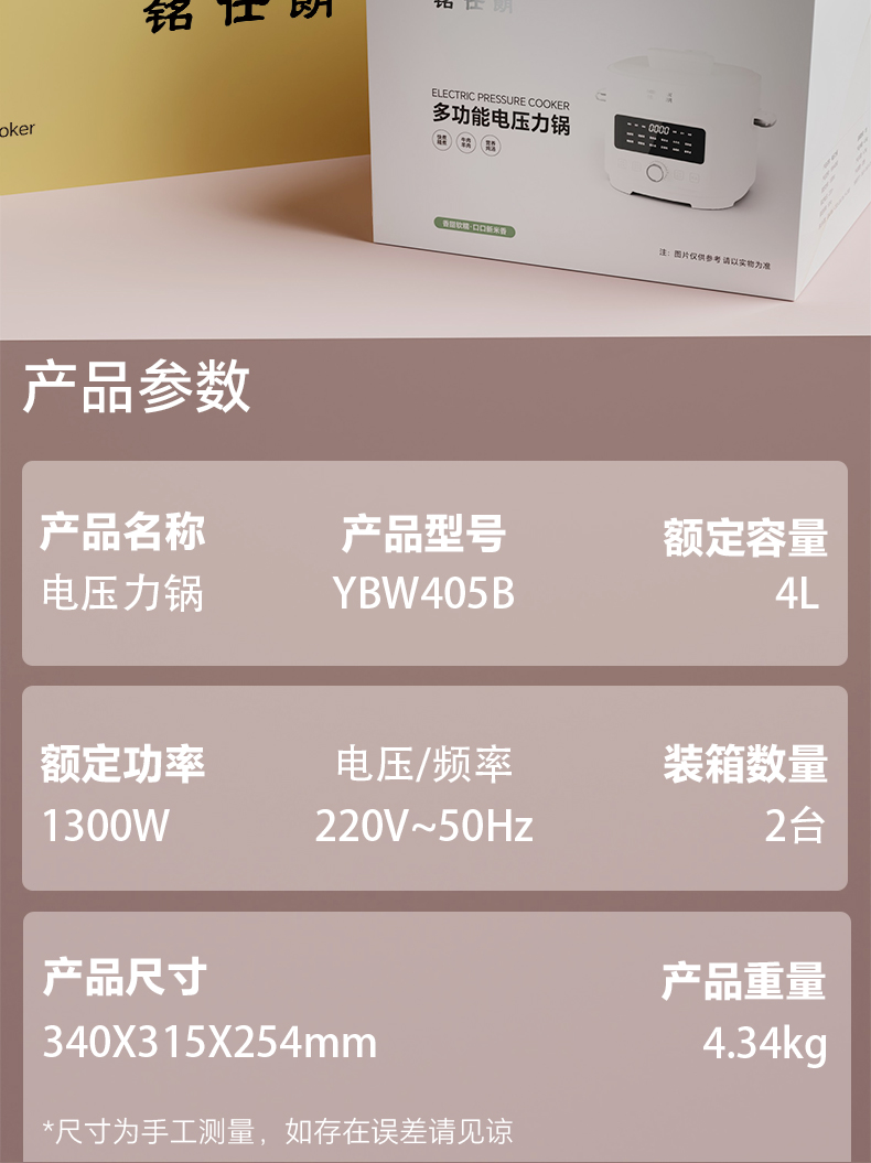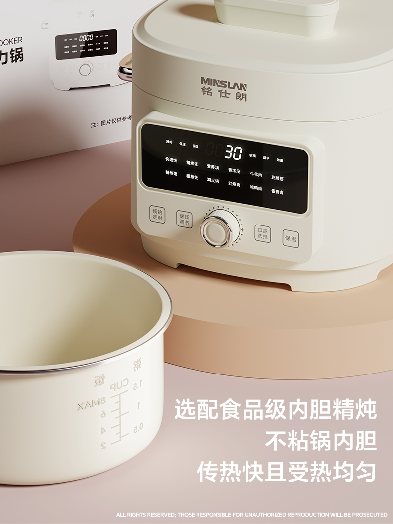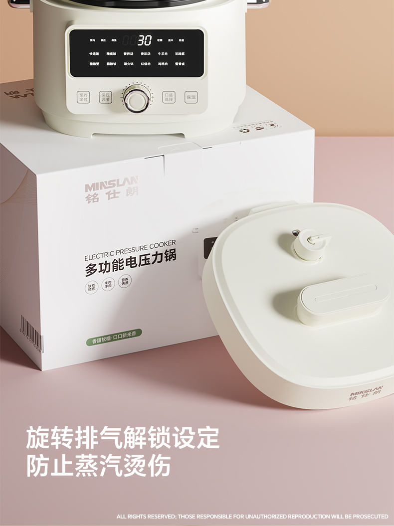 商品名称:铭仕朗(MINSLAN) 电压力锅 电压力锅家用新款4L全自动智能预约多功能高压锅饭锅. YBW405B 6977411130081