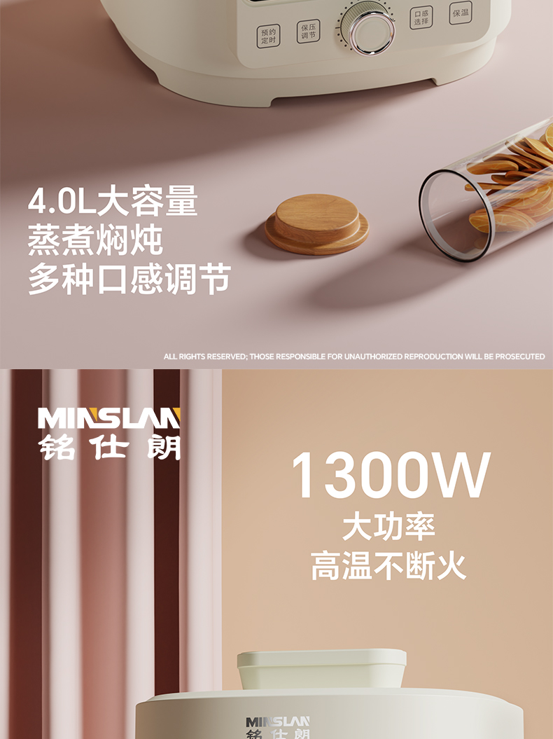 铭仕朗(MINSLAN) 电压力锅 电压力锅家用新款4L全自动智能预约多功能高压锅饭锅. YBW405B 6977411130081