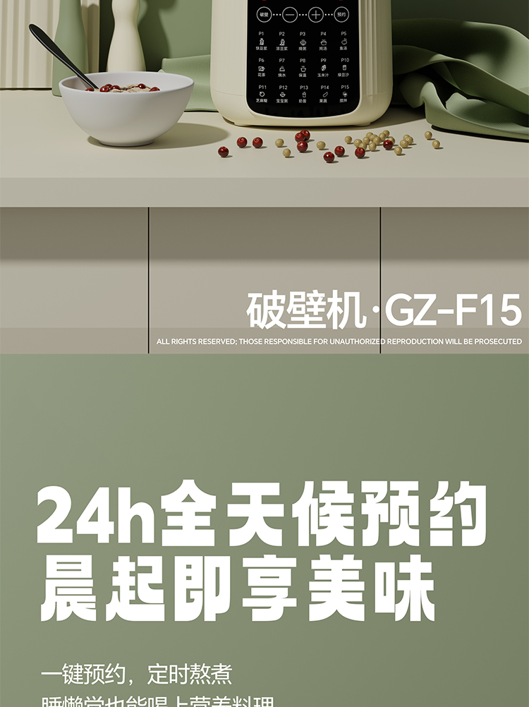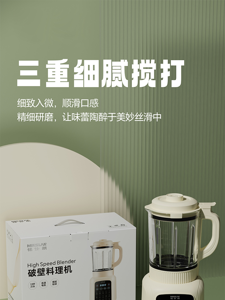 铭仕朗(MINSLAN) 破壁料理机 家用多功能 降噪预约加热豆浆机早餐机榨汁机辅食机大容量. GZ-F15 1.75L 6977411130050