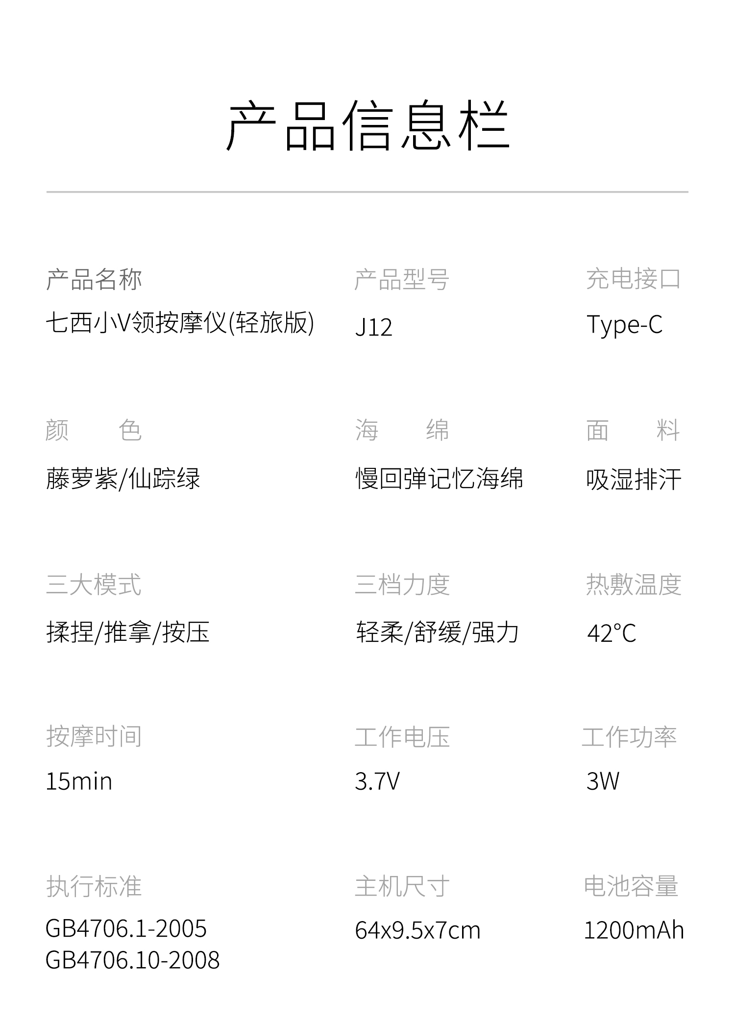 商品名称:七西小V领颈部按摩仪轻旅款7C-J12 藤萝紫 6978516260307 偏远另加运费