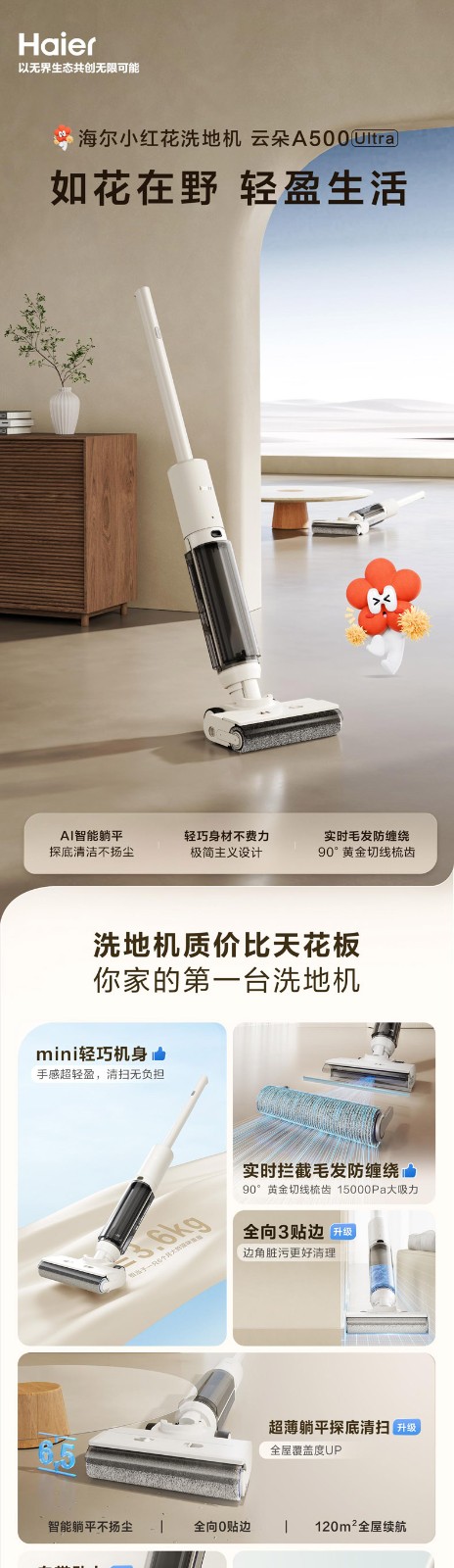 海尔家用无线智能洗地机RHXC-A500Ultra