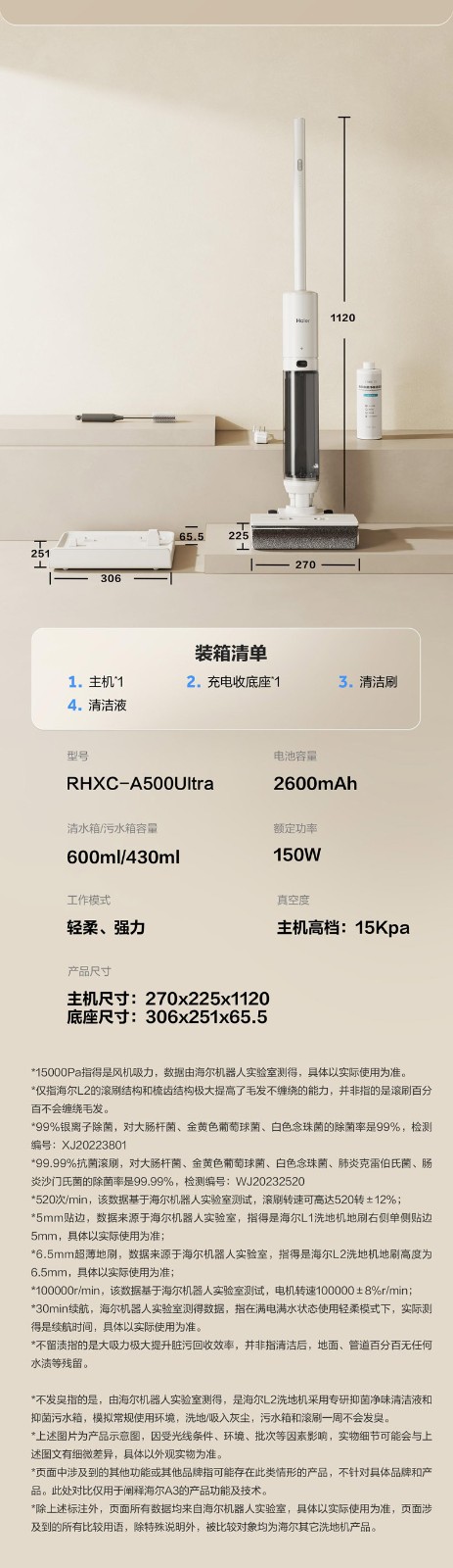 商品名称:海尔家用无线智能洗地机RHXC-A500Ultra