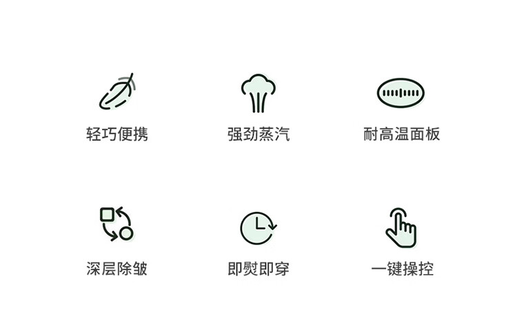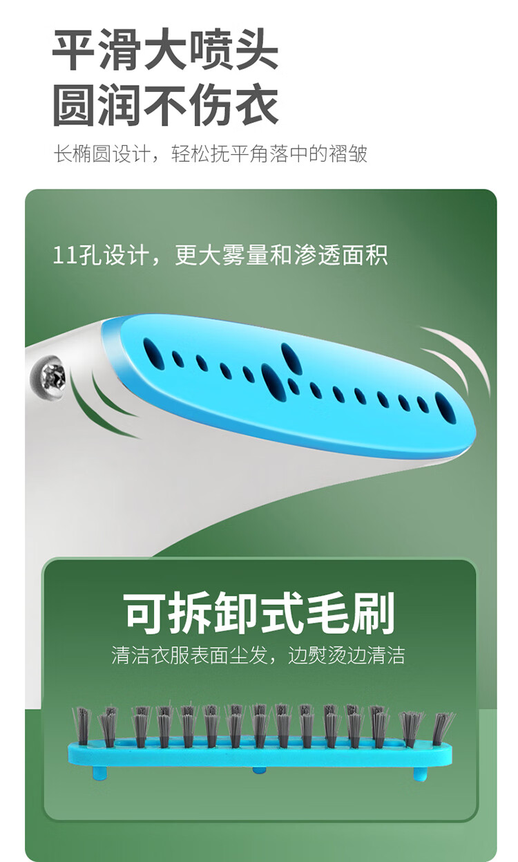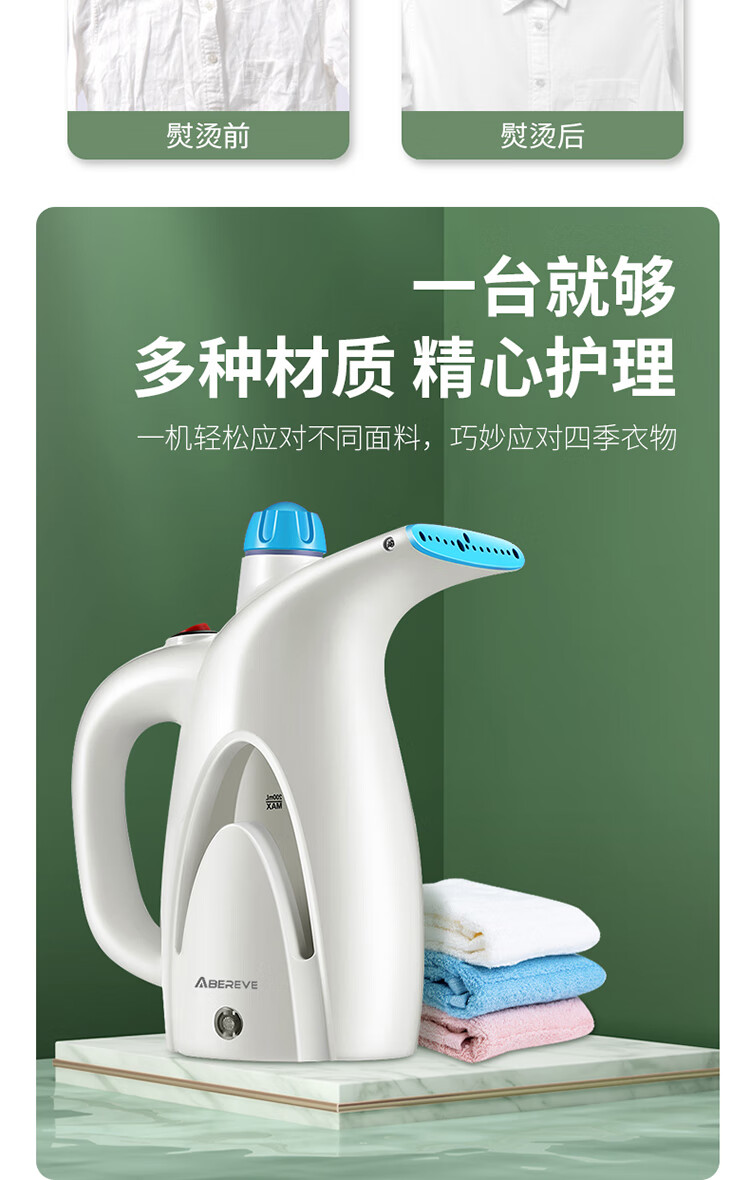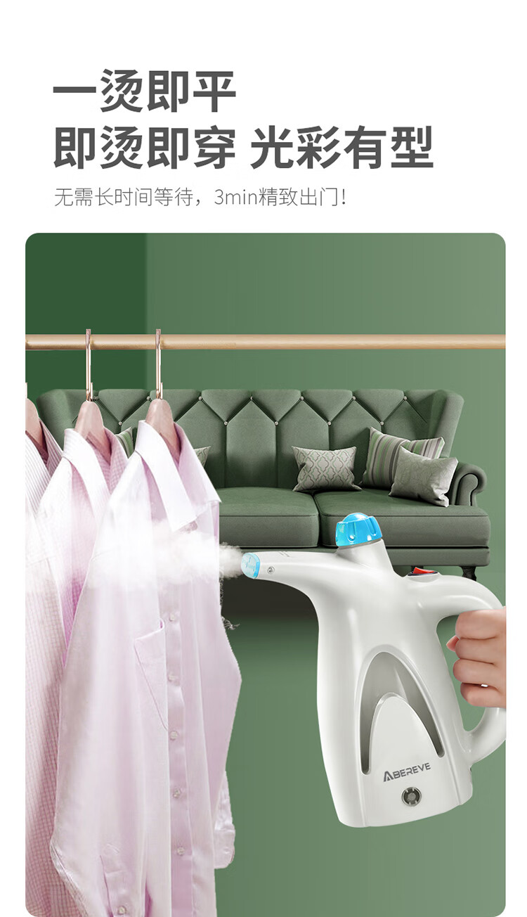 大功率快速出汽,大蒸汽量 轻松应对各类衣物 迷你便携,出差旅行家用都合适 一机多用,杀菌除尘,蒸脸美容,平整熨衣