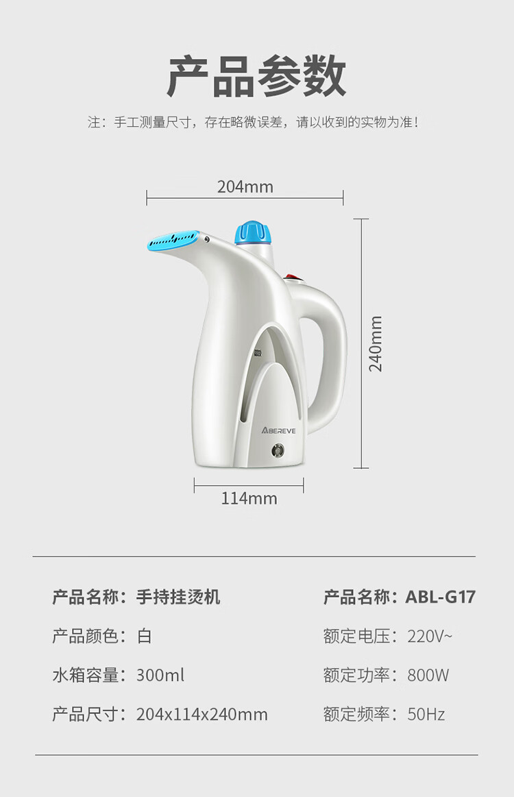 商品名称:艾贝丽手持挂烫机 ABL-G17 6972149931771 偏远另加运费